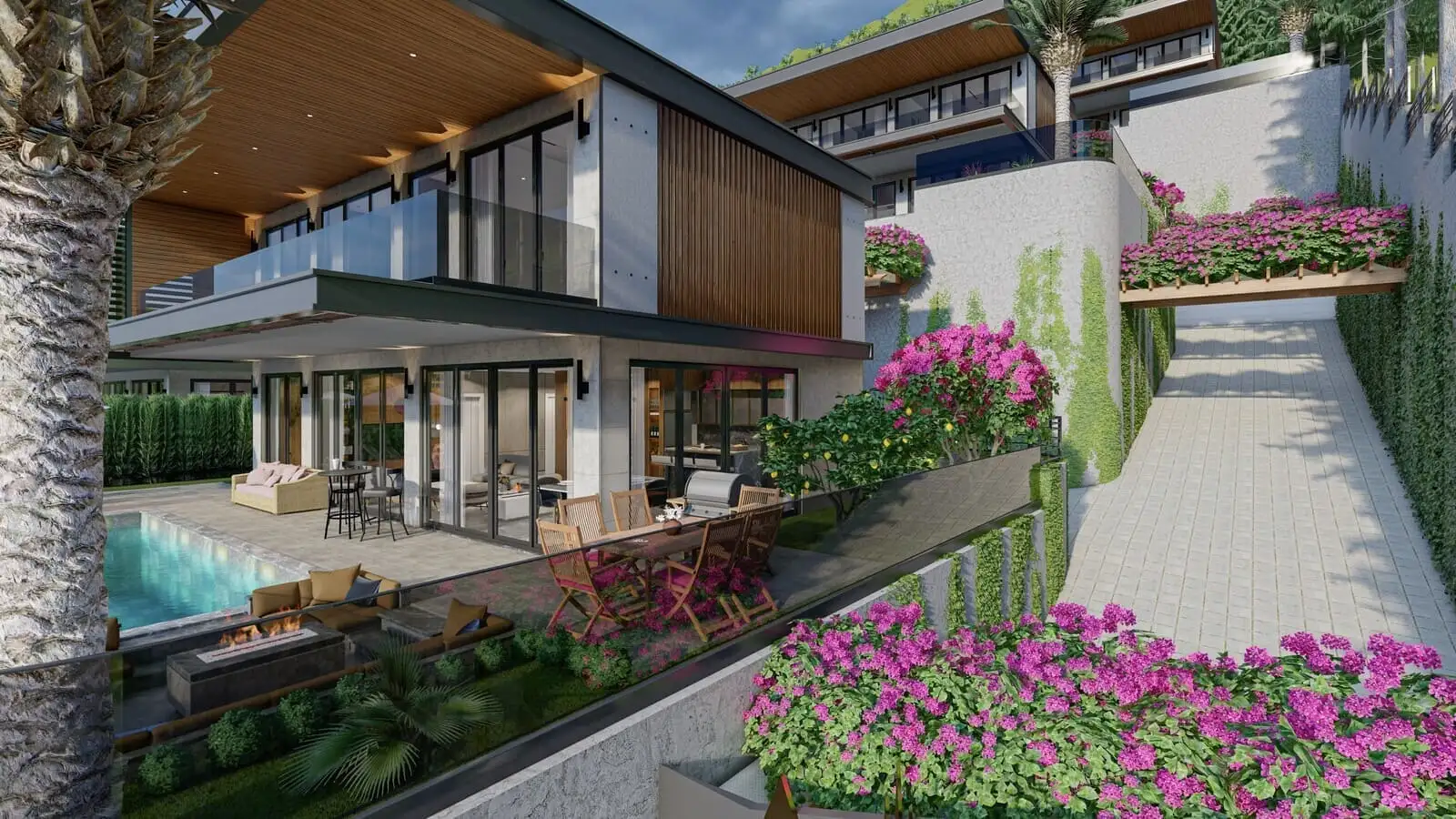 For citizenshipFor rentFor investmentWhat you get: Luxury villas with panoramic sea views in Bektas district, Alanya. About Construction: Construction started in October 2022 and completion is scheduled for June 2024. The down payment is 50% and there is an interest free installment until completion. Area: Bektaş is one of the most picturesque areas, located north of the center of Alanya right on the hills of the Taurus Mountains. From here you can enjoy a magnificent panoramic view of the Mediterranean Sea and the medieval fortress of Alanya. In the Bektash neighborhood there is a new park I Love Alanya, where you can walk in the cool mountain climate and get a bird's eye view of the whole city. The Bektash neighborhood is being actively developed with European quality villas.What's nearby: Closer to the city center there are supermarkets, grocery and clothing market, various stores, a beautiful promenade, sports and children's playgrounds, restaurants and cafes, parks, cultural center, seaport, where you can ride a yacht, the fortress of Alanya, within walking distance of the famous Cleopatra Beach and a large recreation area on the beach, as well as other urban infrastructure.What's in the complex: The project will be located on a closed territory of 5 115 m2 and will consist of 6 villas. On the territory of each villa will be located panoramic infinity pool, recreation area and barbecue, closed garage for 2 cars, generator. Inside: The villas have a cozy, landscaped area on which is located a three-storey house.