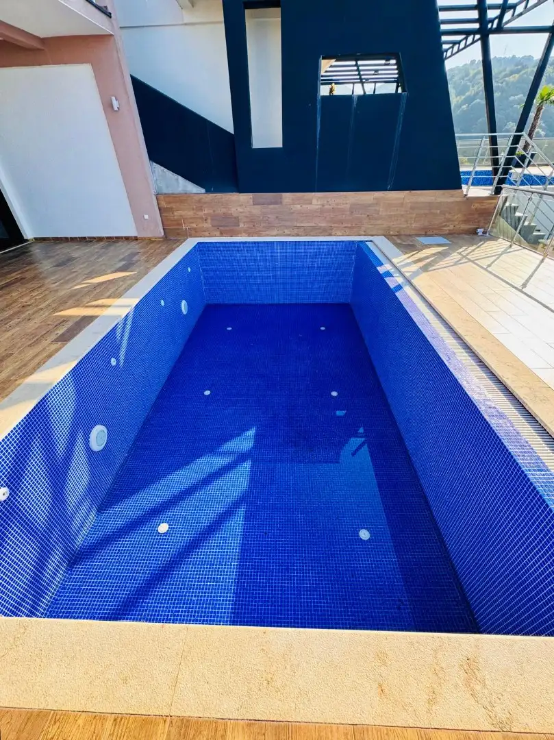 On one of the terraces of the duplex there is a swimming pool with a recreation area.