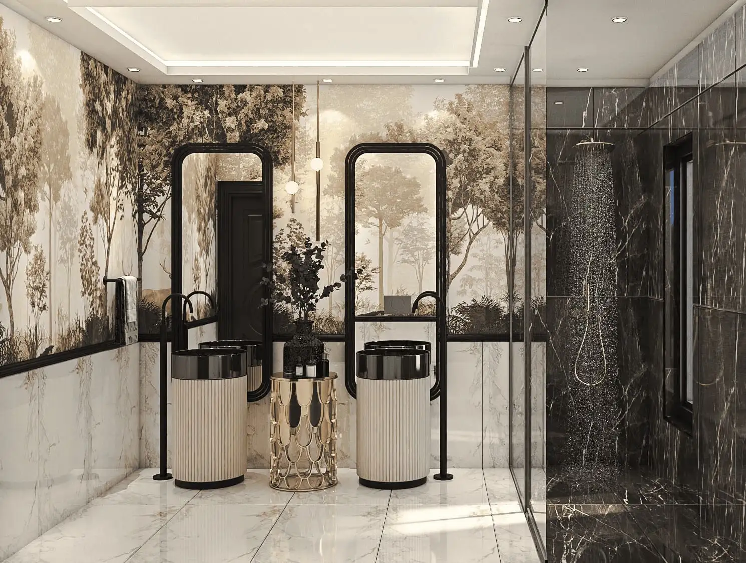 Inside: The space of each villa is designed to create a balance between luxury and coziness: a large living room with panoramic windows in full height and a fireplace; kitchen with a dining area and access to the terrace; 5 bedrooms, each with a personal bathroom and dressing room, the main bedroom with a Jacuzzi and a private terrace of 115 m2, recreation areas, a cinema, a sports hall and a SPA floor.