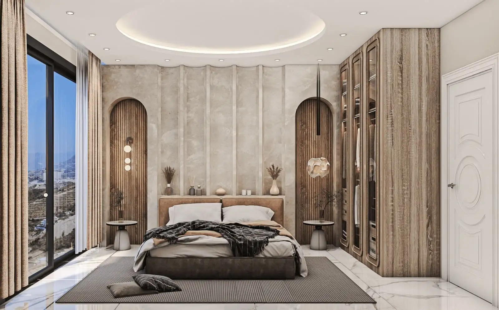 What's next? In the immediate vicinity are: restaurants with panoramic views, supermarkets, farmers' markets, schools, medical institutions and urban infrastructure. The center of Alanya and the beach of Cleopatra are only 10-15 minutes away. The villas are bordered by a green park area, which guarantees privacy and a view that will never be built up.
