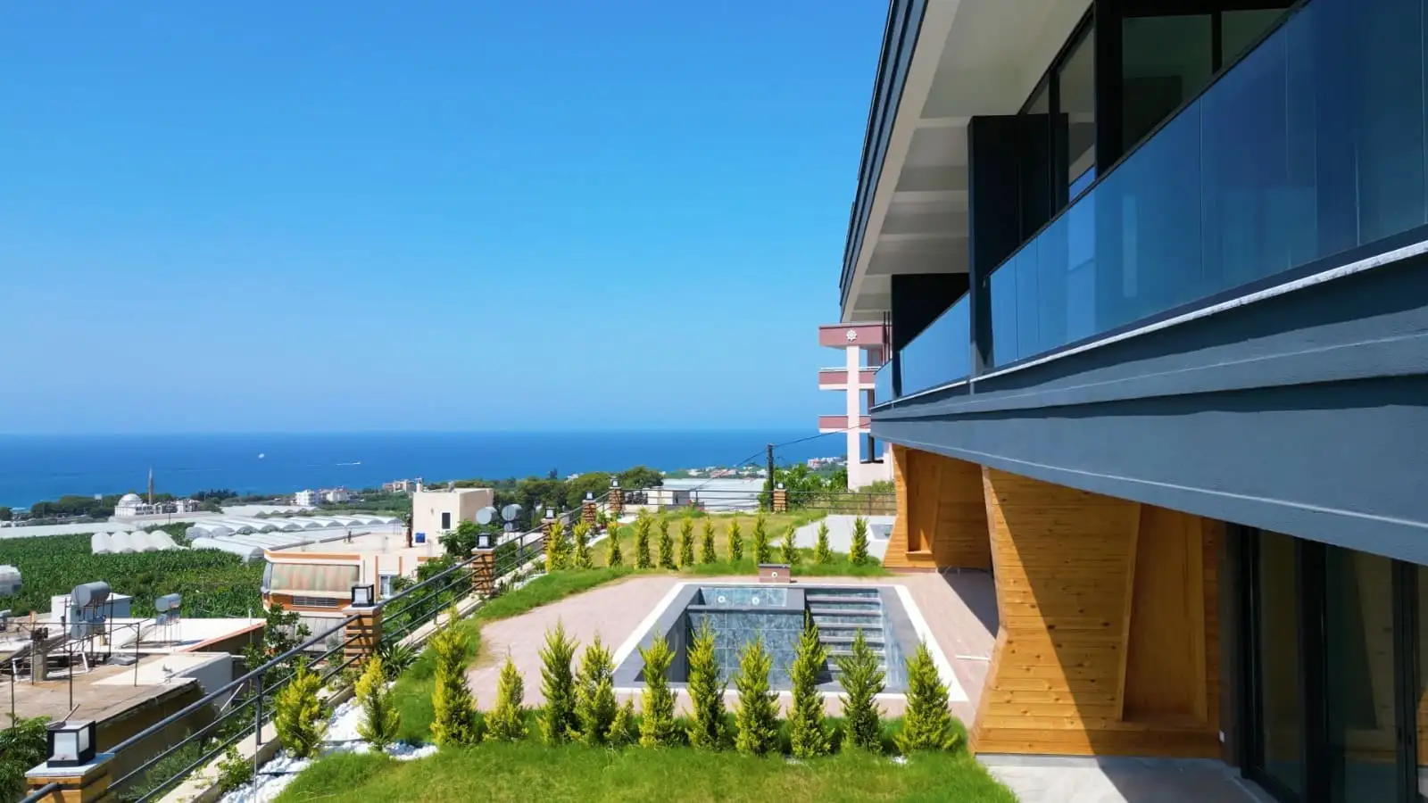 What is in the complex: The complex is being built 600 meters from the Mediterranean Sea, among a coniferous park. Due to the difference in the height of the relief from the territory of the complex will open a sea view. ;