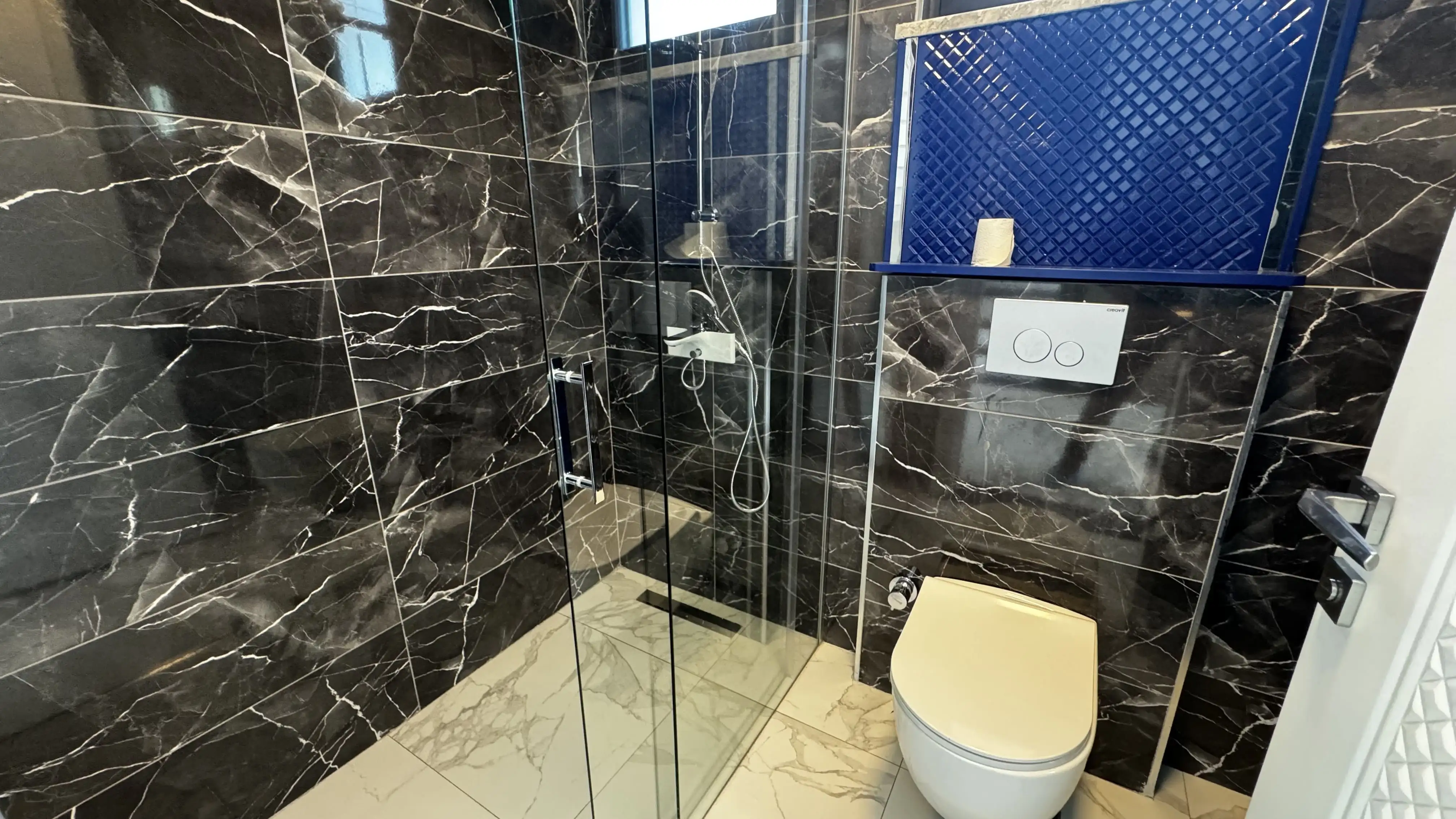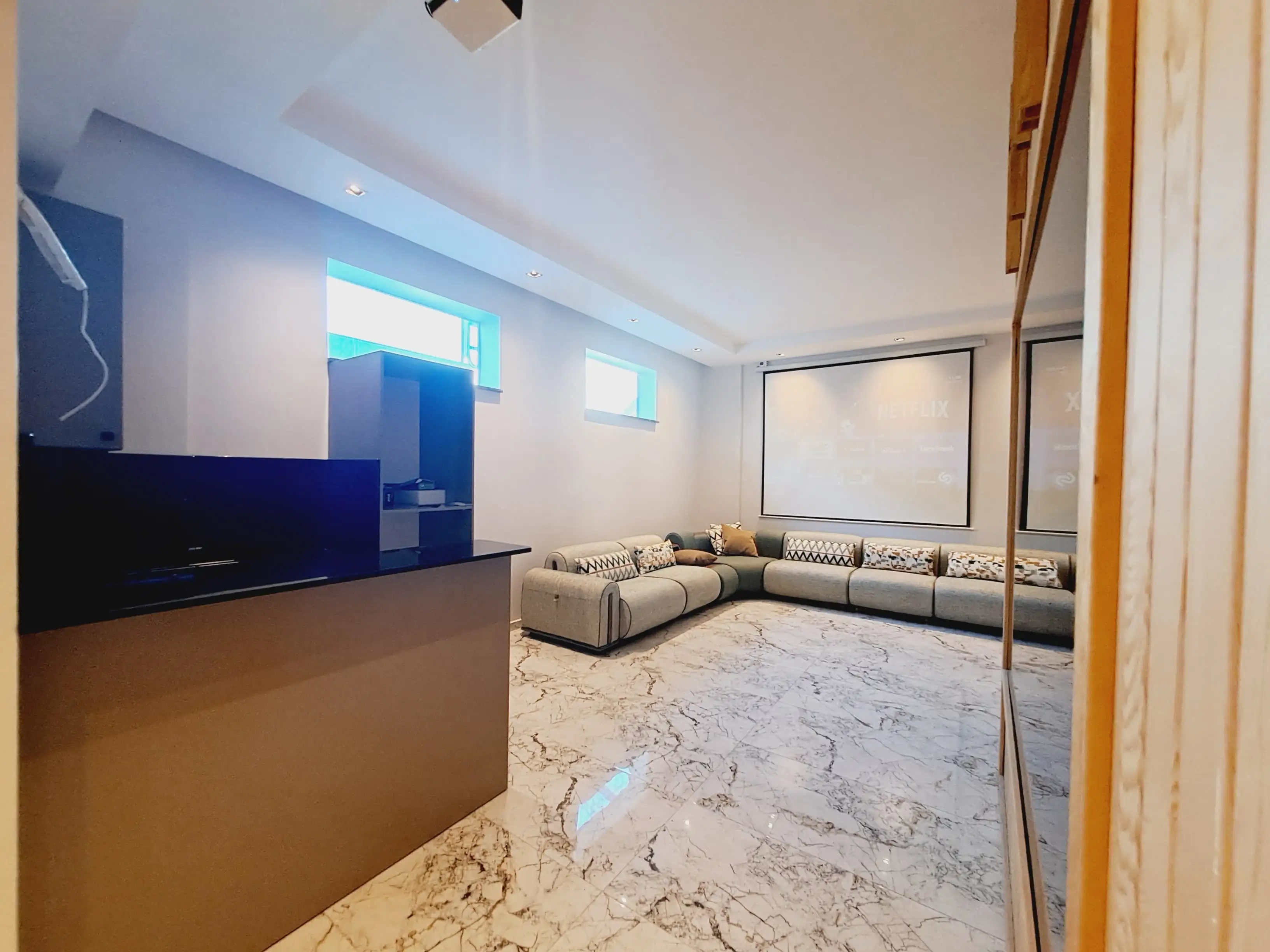 All villas will be handed over with a clean finish - ceramic flooring, spot lighting, double glazed glass, as well as a kitchen set with a granite countertop and equipped bathroom.