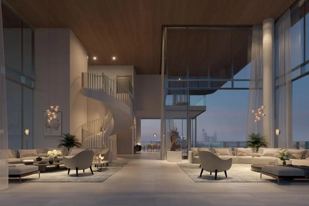 Amenities: 10,000 sq.m gym, spa with jacuzzi, sauna, steam room, cold plunge pool, massage room. Golf simulator room, private cinema, game room, indoor/outdoor children's play area, tennis court, landscaped pool, swimming pool, jacuzzi, children's play pool, nightclub, beach for residents.