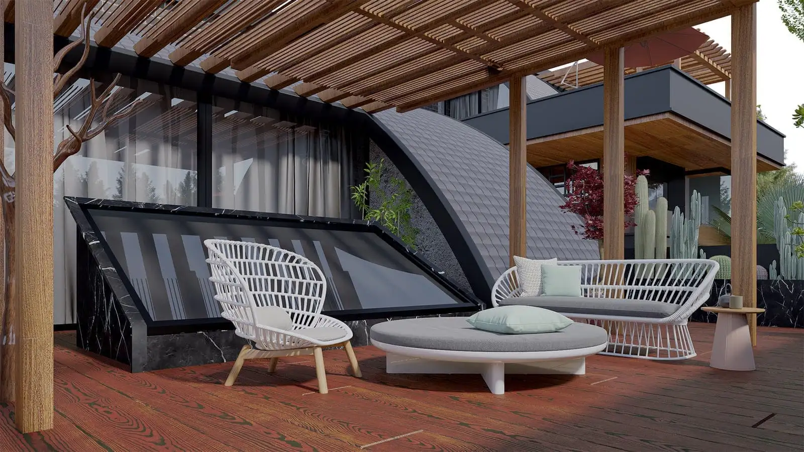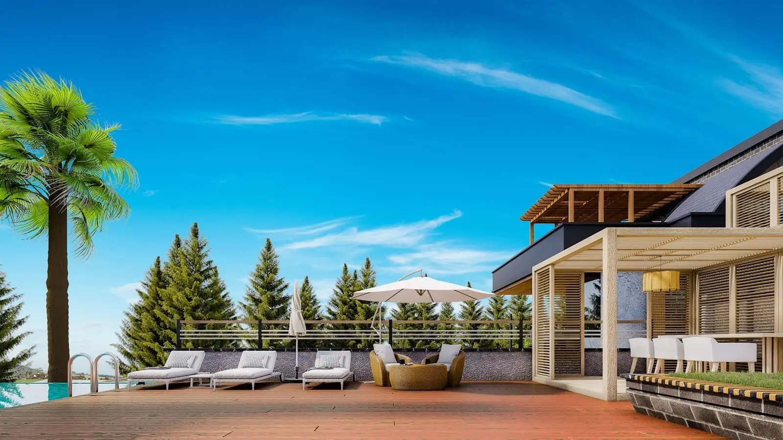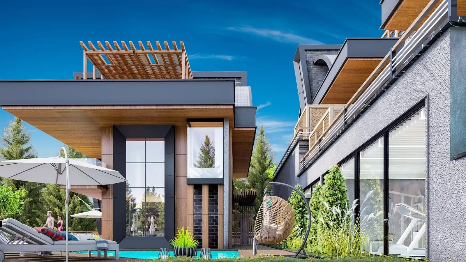 Виллы относятся к категории премиум класса и обладают всеми основными элементами инфраструктуры, характерными для такого уровня недвижимости, а именно: личный гараж, ландшафтный сад, инфинити бассейн, лифт и зону барбекю.