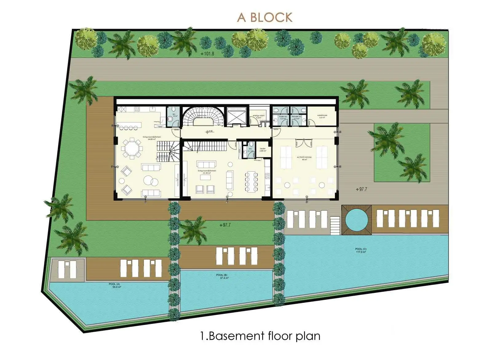 Duplexes 3+1 with its own garden and swimming pool with a total area of 206 and 405 m2;