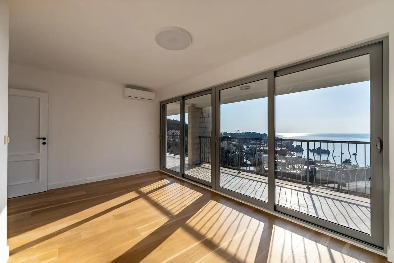 A magnificent penthouse with amazing panoramic views of the sea, mountains and the charming fishing village of Przno. Just a 5-minute walk from one of the most beautiful beaches in Montenegro and Milocer Park.