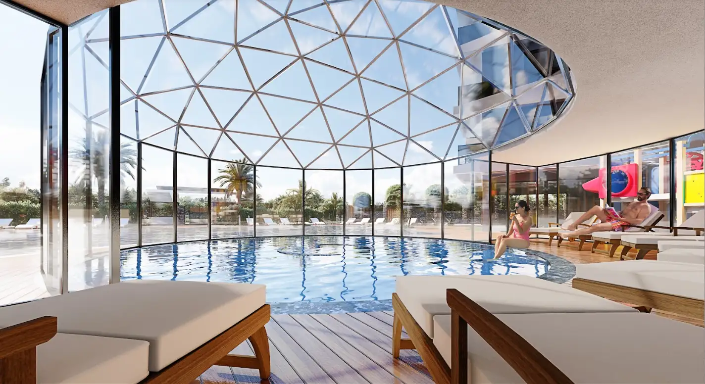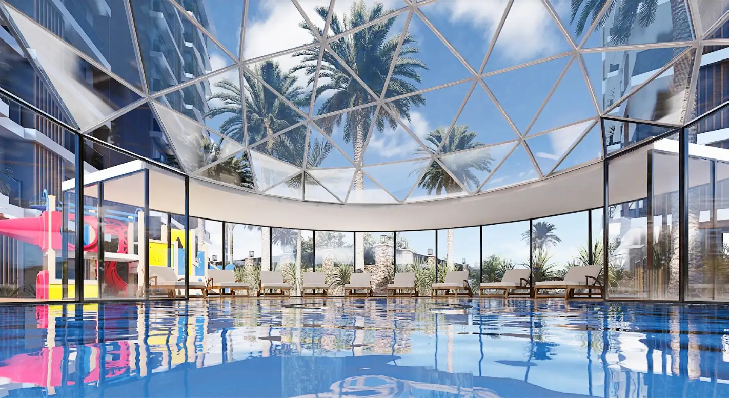 What's in the complex: On the plot of 4000 m2 there are two residential blocks, outdoor and indoor swimming pools, hammam, Finnish sauna, Roman steam room, fitness, outdoor playground, arbors for recreation and barbecue, open parking.