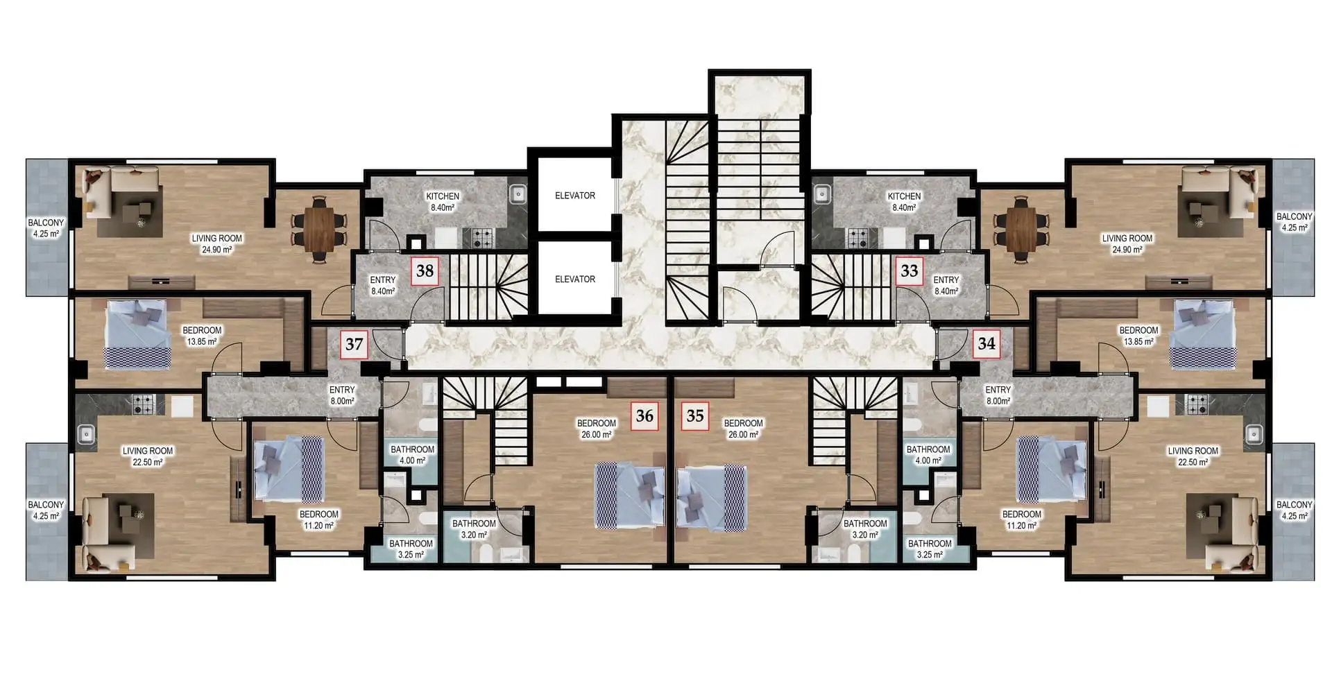 What you get: Apartments in a new residential complex in the center of Alanya.