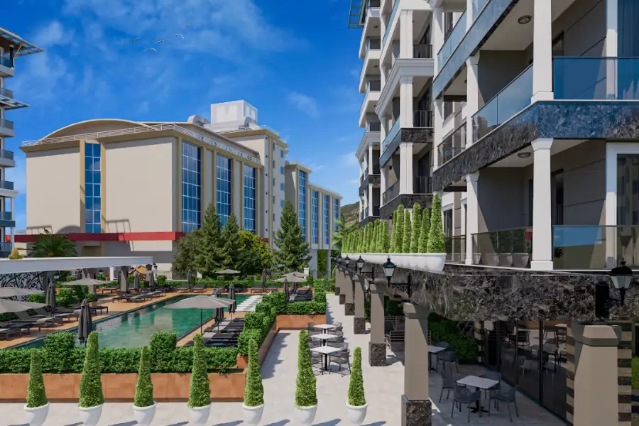What you get: Corner duplex 2+1 in a new luxury complex in the heart of Alanya, just 1km from the famous sandy beach Cleopatra. View of the mountains, sea and city.About the construction: The complex is from a reliable developer. Completion is scheduled for June 2024. Area\beach: The project is located in the center of the city, in the area of Cleopatra Beach. It has a convenient location at the intersection of the ring road and major roads, 120 km from Antalya Airport, 40 km from Gazipasa Airport.What's nearby: Nearby there is a hospital, school, bank, food and clothing markets, official institutions, supermarkets, restaurants and cafes. To the world-famous, sandy Cleopatra beach, beautiful parks, promenade, only 1100 meters.What's in the complex: On the area of the complex of 4237 m2 is located 2 residential blocks (137 apartments), and developed infrastructure, of which there is an outdoor pool, children's pool, indoor pool, Turkish bath, sauna, fitness center, cafeteria, covered parking, playground, children's playground, hotel rooms where your guests can stay.Inside: Apartment 2+1 located on the 8-9th floor and has a total area of 150m2. 2 bathrooms, 1 bath, 1 shower. Large terrace and balcony. Overlooking the mountains, the sea and the city itself. The apartments are sold in a clean finish, with air conditioning in each room, lighting, cabinets in the bathrooms and kitchen, sanitary ware, quality doors and windows, with quality, washable wall covering. Underfloor heating is installed throughout the apartment. Also the apartment is fully