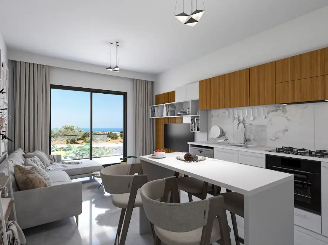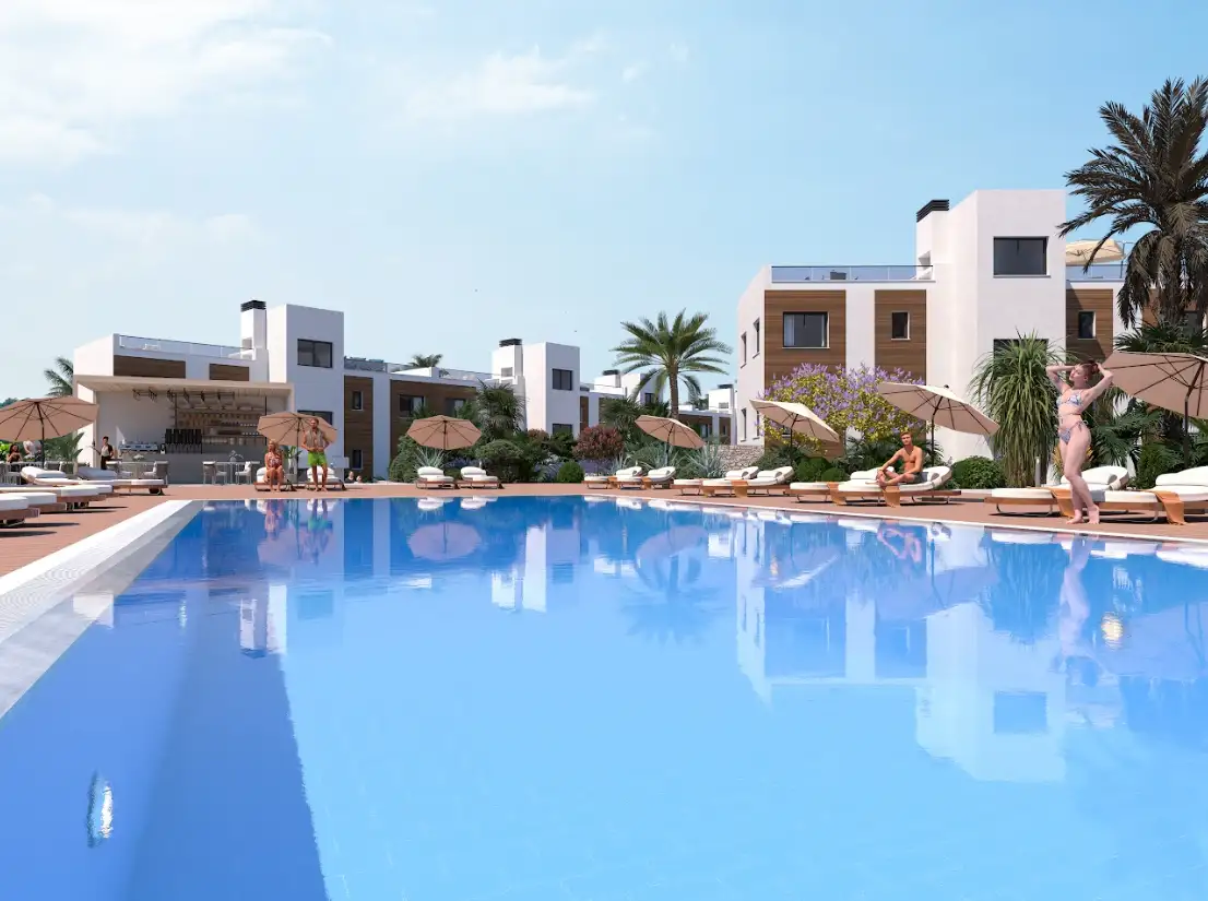 What you get: Spacious apartments with private garden or roof terrace in a new investment project in the prestigious area of Girne, North Cyprus. About the construction: The residential complex is scheduled for completion in October 2025. The down payment is 35% and the remaining amount can be paid monthly in interest free installments until the completion of the project. Neighborhood: Karaach is a picturesque coastal village located near the town of Girne in Northern Cyprus. Karaach is known for its beautiful coastline with cozy beaches. Here you can enjoy the clear sea and sunny days. Karaach is in close proximity to Girne, which provides access to the additional amenities and infrastructure of the town. What's nearby: The residential complex is literally 10 minutes drive from the town of Girne, 45 minutes from Ercan Airport. The distance to the coastline is 2 km. What's in the complex: There are 3 swimming pools, green landscaped garden, mini golf, pool bar, children's playground. Inside: There are apartments of the following layouts for sale: 2+1, living area 75m2, private garden 13m2, terrace 8m2Penthouse 2+1, 75m2 living area, 8m2 terrace, 65m2 roof terrace.Who may be interested: Investors who are looking for rental or resale opportunities.Lovers of scenic views and coastal vacations, preferring to