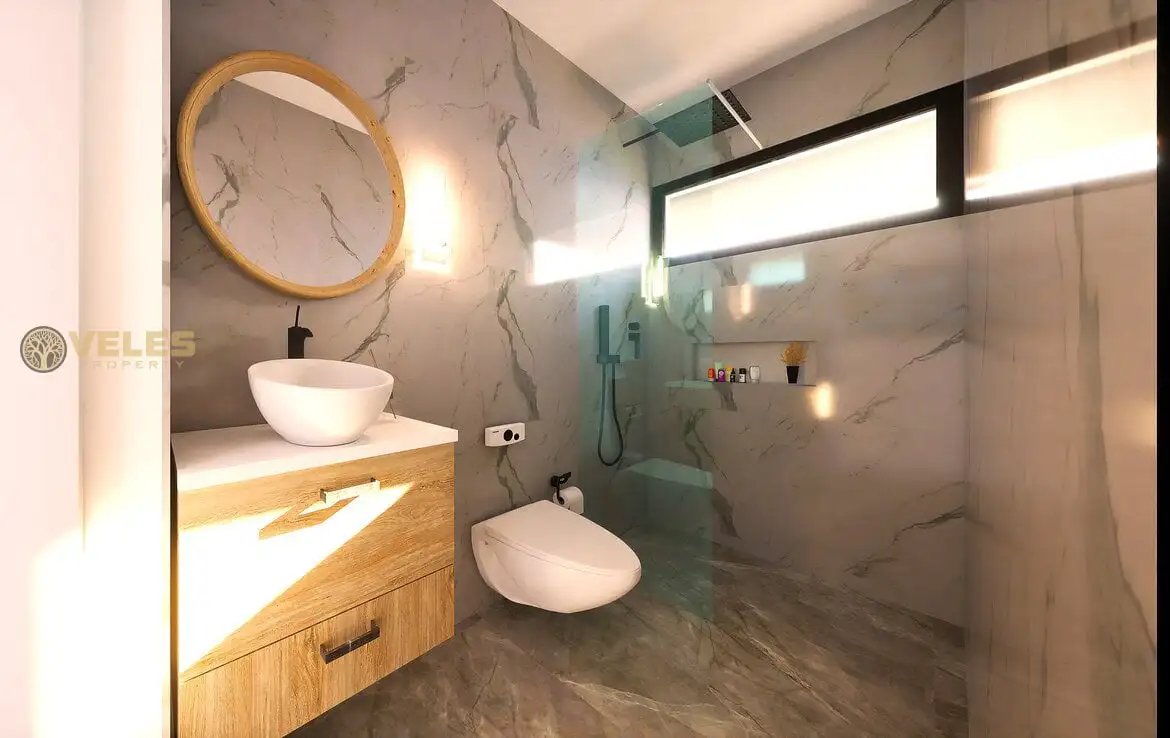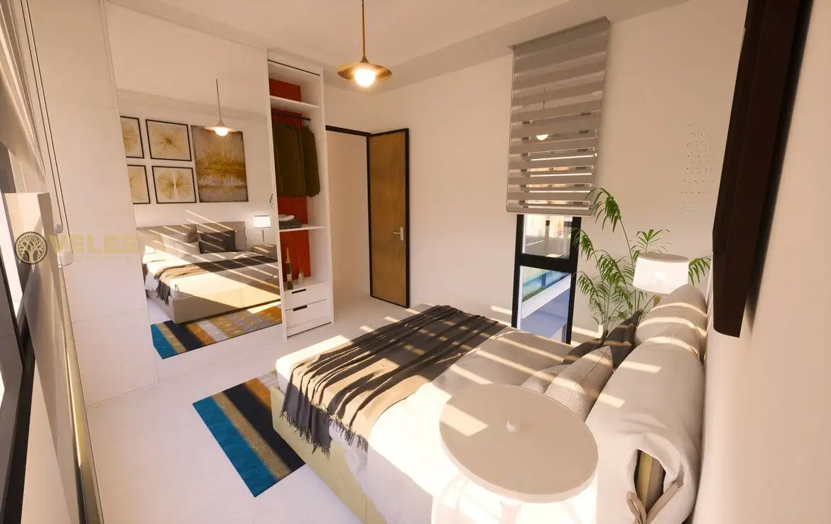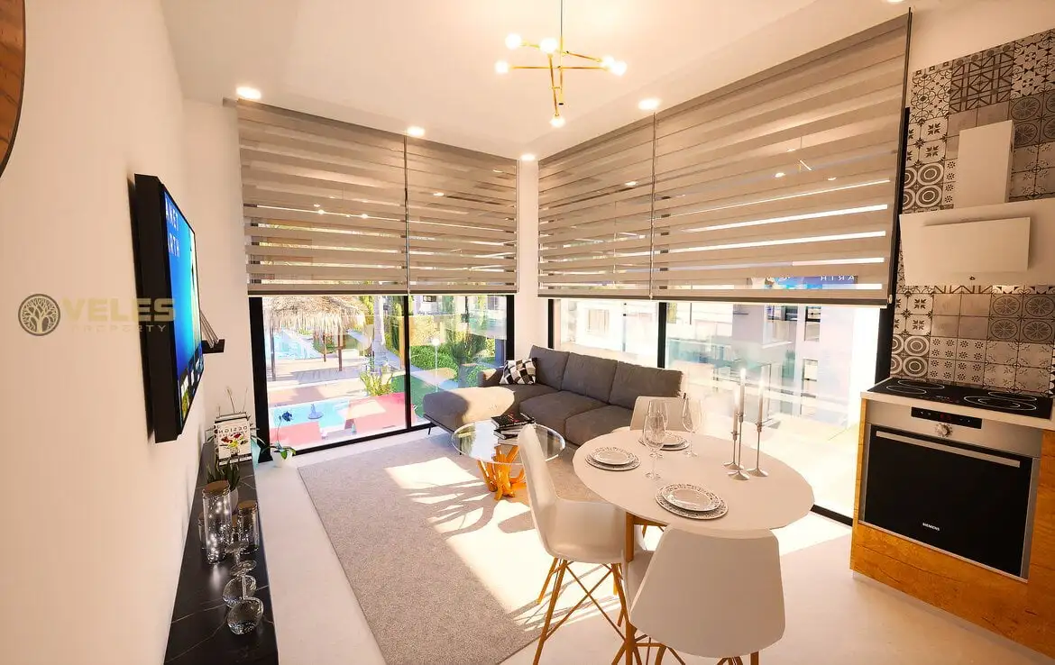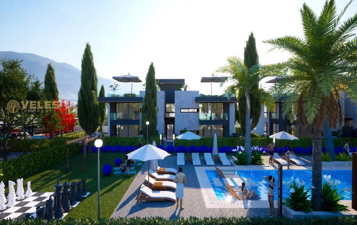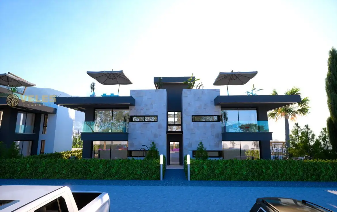 Beautiful Apartment in the project will attract your attention!This is a new residential complex in the center of Alsanjak. It is located close to the sea, just 150 meters from the luxurious Camelot beach. There is a large supermarket Shokmar within walking distance. It is located close to the highway connecting Kyrenia with the western part of the island. Here you can always take a shuttle bus to any part of the island. All necessary infrastructure is located along the road, i.e. in walking distance. An ideal place both for permanent residence and for renting. This complex will also have a large swimming pool, playground, as well as a beautiful garden.The apartments are very spacious, with an improved layout and panoramic floor-to-ceiling windows. The height of the blocks is only 2 floors and there are only 4 apartments in each block, 2 of which on the lower floor have their own gardens. The top floor apartments have a terrace with sea and mountain views. All apartments have a 2+1 layout, i.e. two bedrooms and a living room combined with a kitchen area. There is also a hallway with a built-in closet. The apartments are new and are sold unfurnished, but with finishing, kitchen furniture and all sanitary ware. Ideal for investing in your family's future.So, a beautiful apartment in the project is waiting for you!When buying this apartment - VELES Property provides assistance not only in obtaining a residence permit, but also a bank account, driver's license, health insurance, as well as the purchase of the apartment.