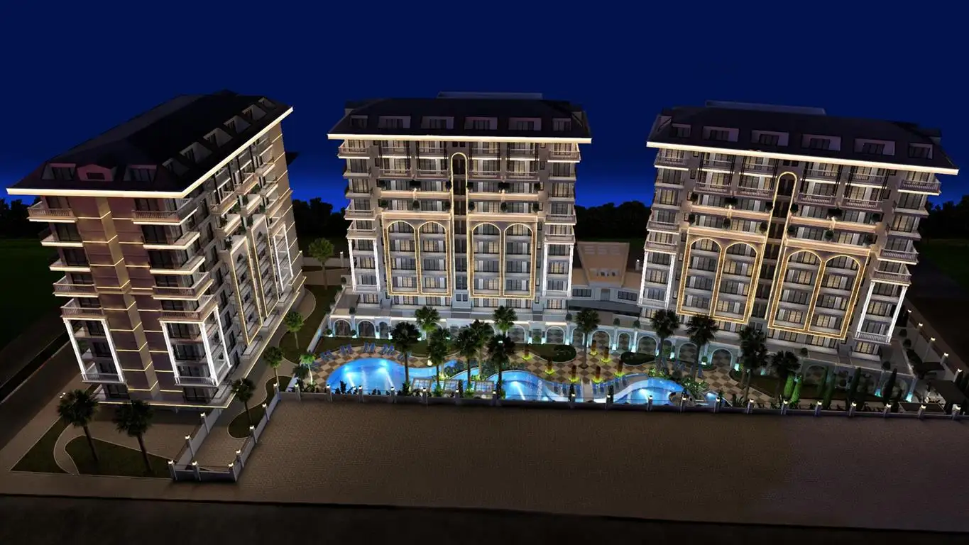 What you get: Spacious two bedroom apartment in a new residential complex located in the center of Alanya, next to Cleopatra beach. The apartment has an area of 98 m². The apartments will be handed over in a clean finish including built-in kitchen set, fully equipped bathrooms, air-conditioning and other amenities. All apartments are equipped with modern security systems and finished with high quality materials.About the construction: Steel entrance door, intercom.Ceramic granite tiles on the floor.Kitchen set with granite countertops.Underfloor heating in the bathroom, built-in cupboards.Suspended ceilings with spot lighting.Air conditioners in each room.Satellite TV.Area/beach: The complex is located in the most popular area of Alanya, 900 meters from the famous sandy beach Cleopatra. This beach is known for its soft golden sand and clear azure water. The area is ideal for both recreation and permanent residence due to the developed urban infrastructure and proximity to historical sights.What's nearby: In walking distance are:Supermarkets and stores.Market and restaurants.Cafes and boutiques.Polyclinic, pharmacies, schools, kindergartens.Banks, ATMs and post office.Historical sights, including Alanya Fortress.What's in the complexThe residential complex consists of four ten-storey blocks with a closed territory and extensive infrastructure. On the first floors of blocks C and D will be located