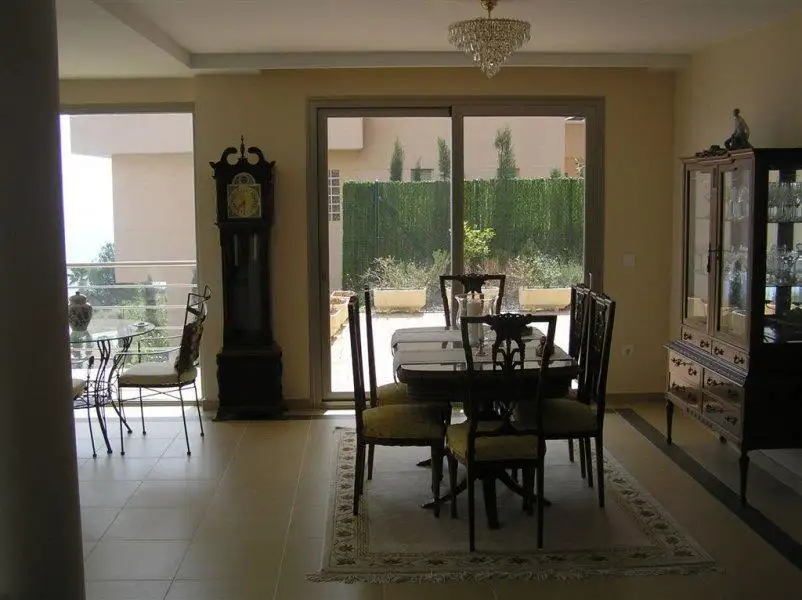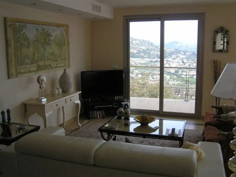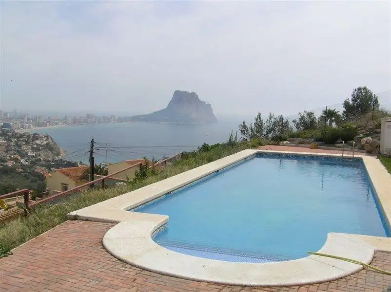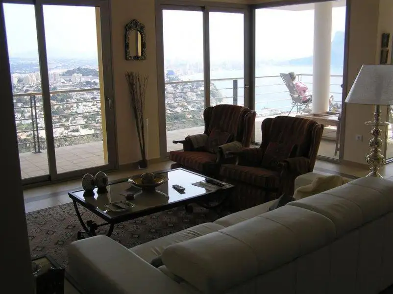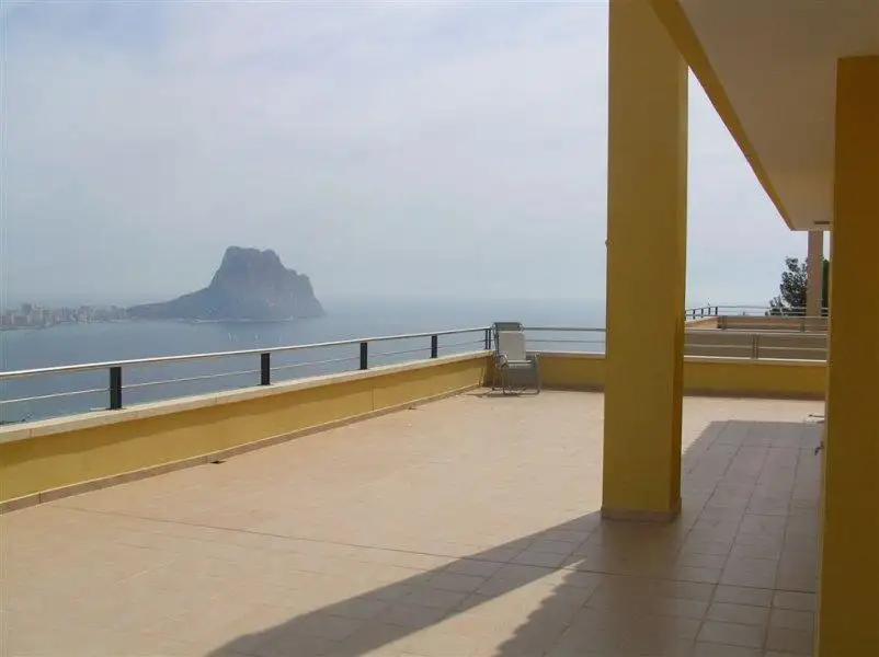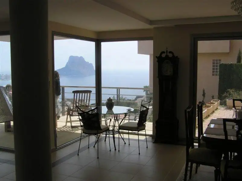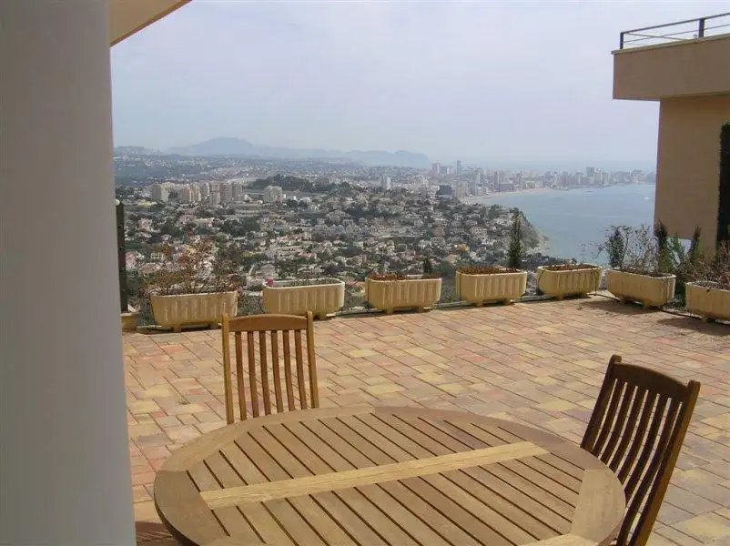 The modern, large, sunny villa with a huge terrace is located in a quiet area of Calpe with magnificent views of the city, sea, and the Penon de Ifach rock. Close to the beach. Kitchen appliances. Sea view. Garage/Parking. Terrace. Furnished. Furnished kitchen.