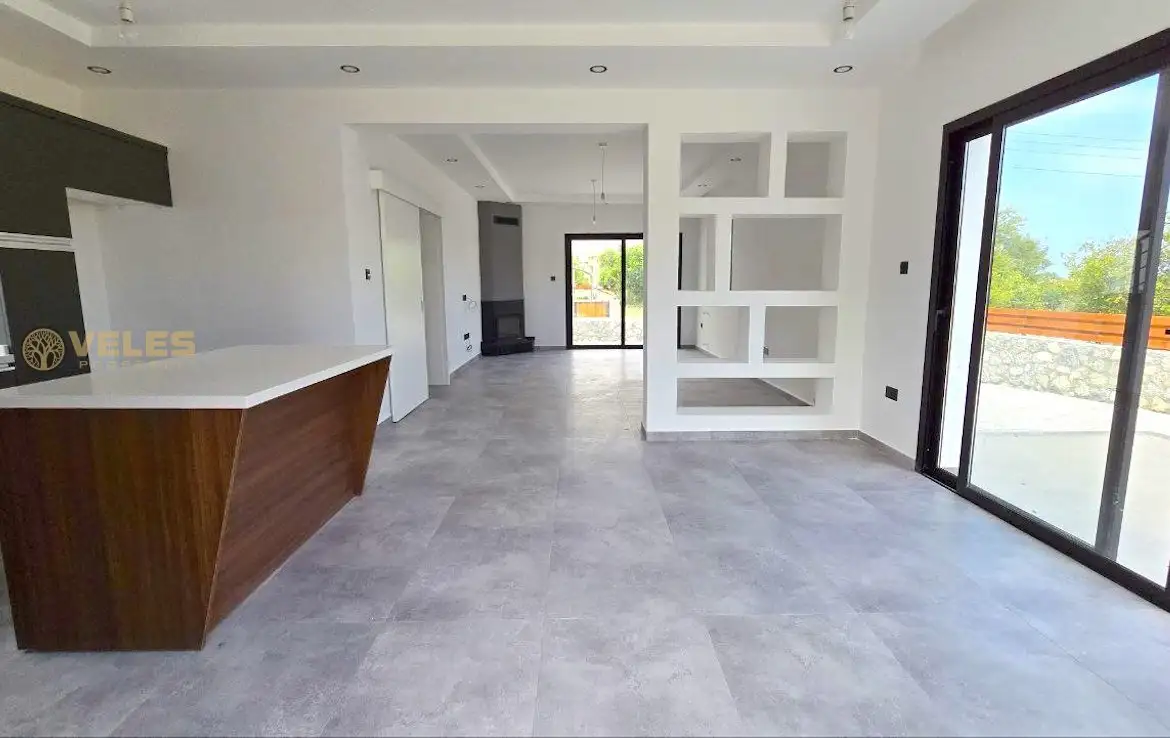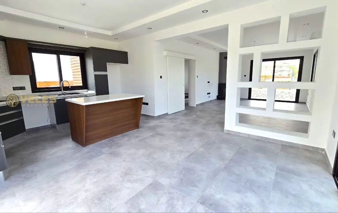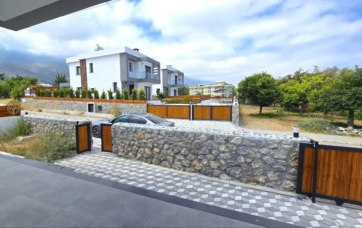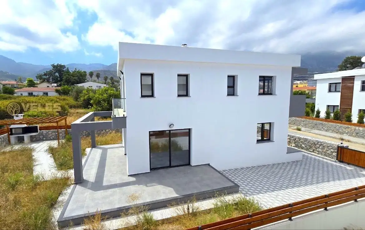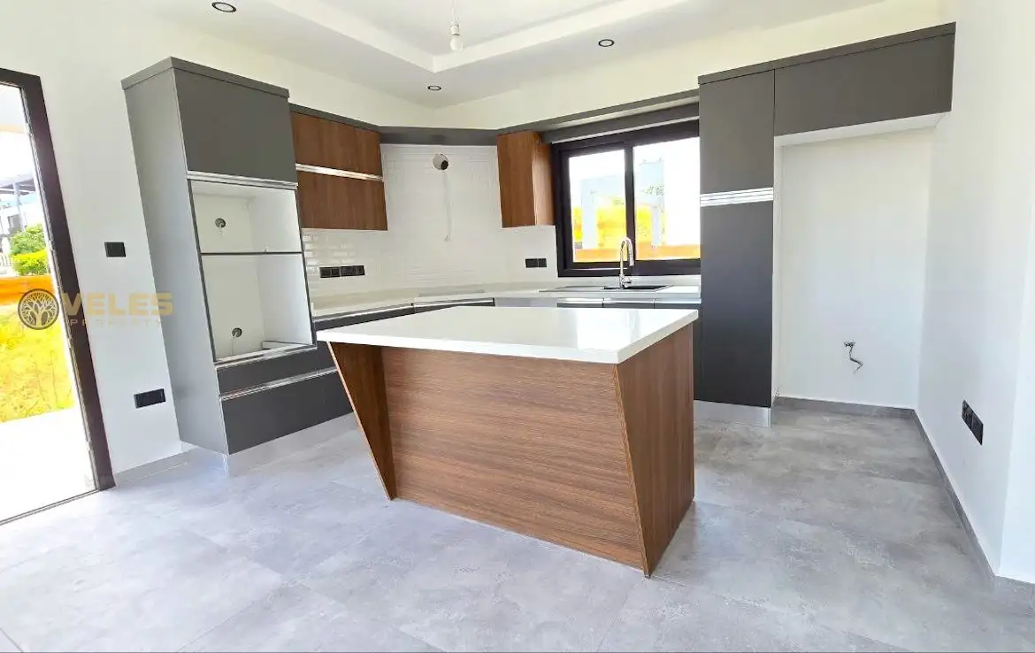 We present to you a new villa near Kyrenia. It is located in the well-known popular village of Alsancak. The villa is situated in a quiet cul-de-sac. Close to markets and a British school. There is a large hotel with a water park nearby. There is a magnificent beach just two kilometers away from the villa. So, the sea is within easy reach.