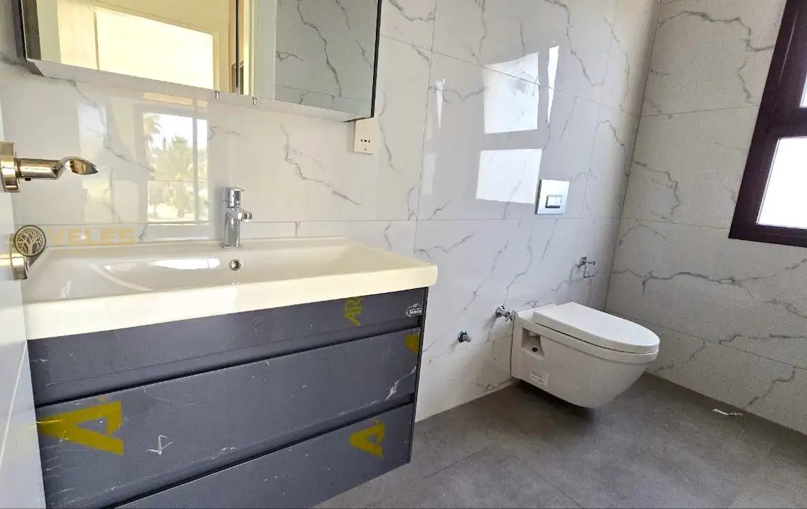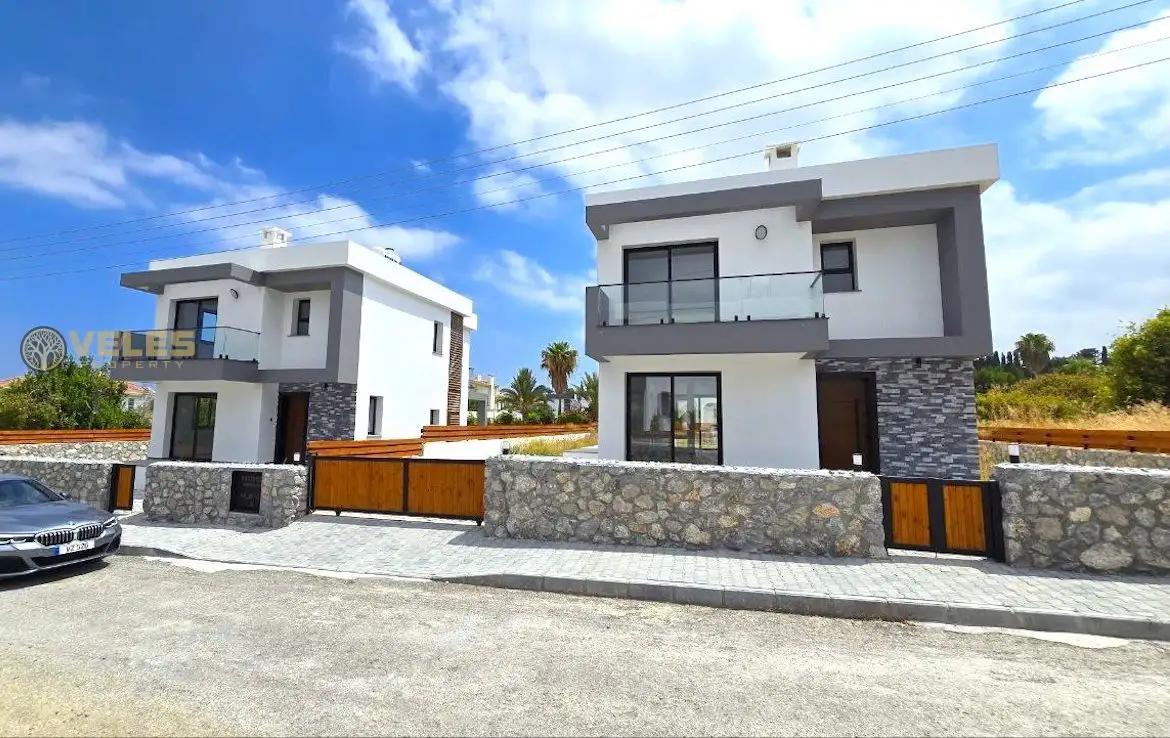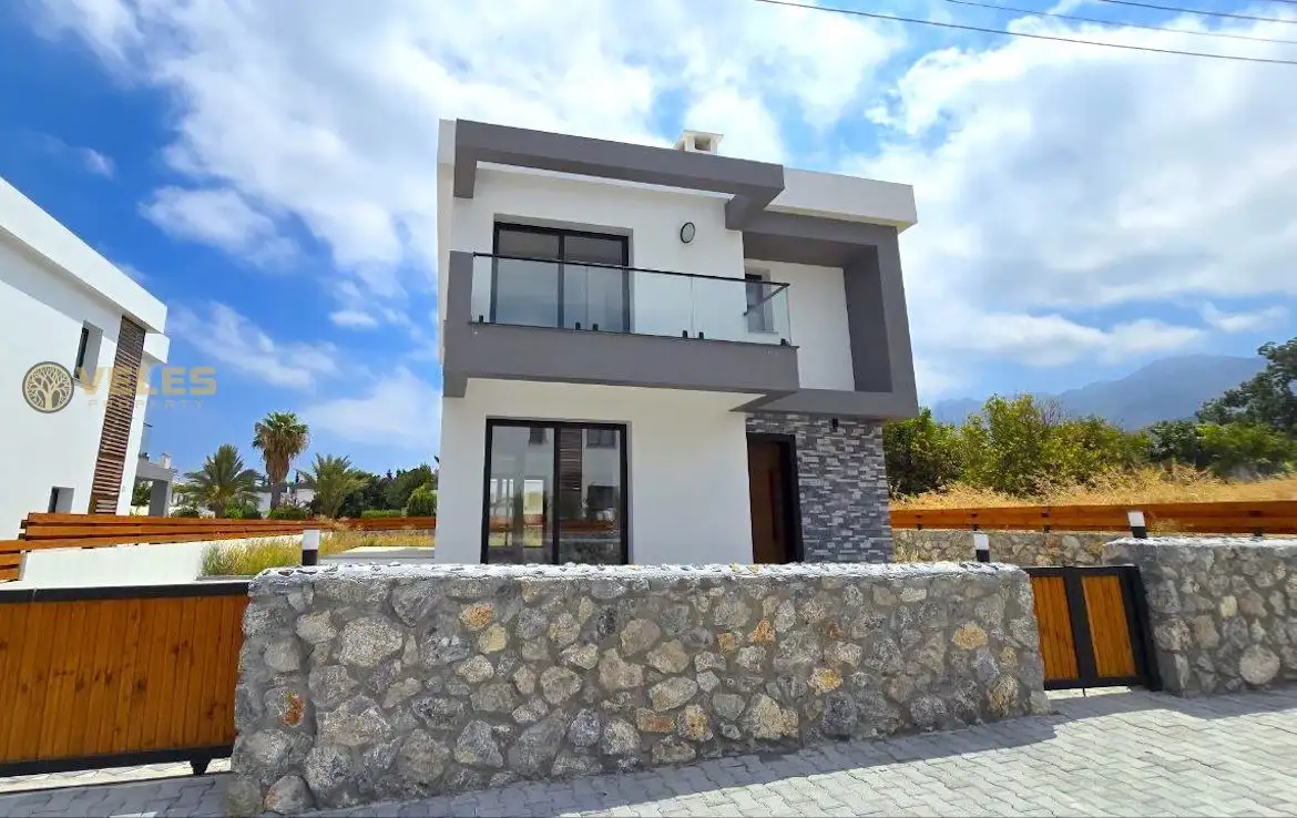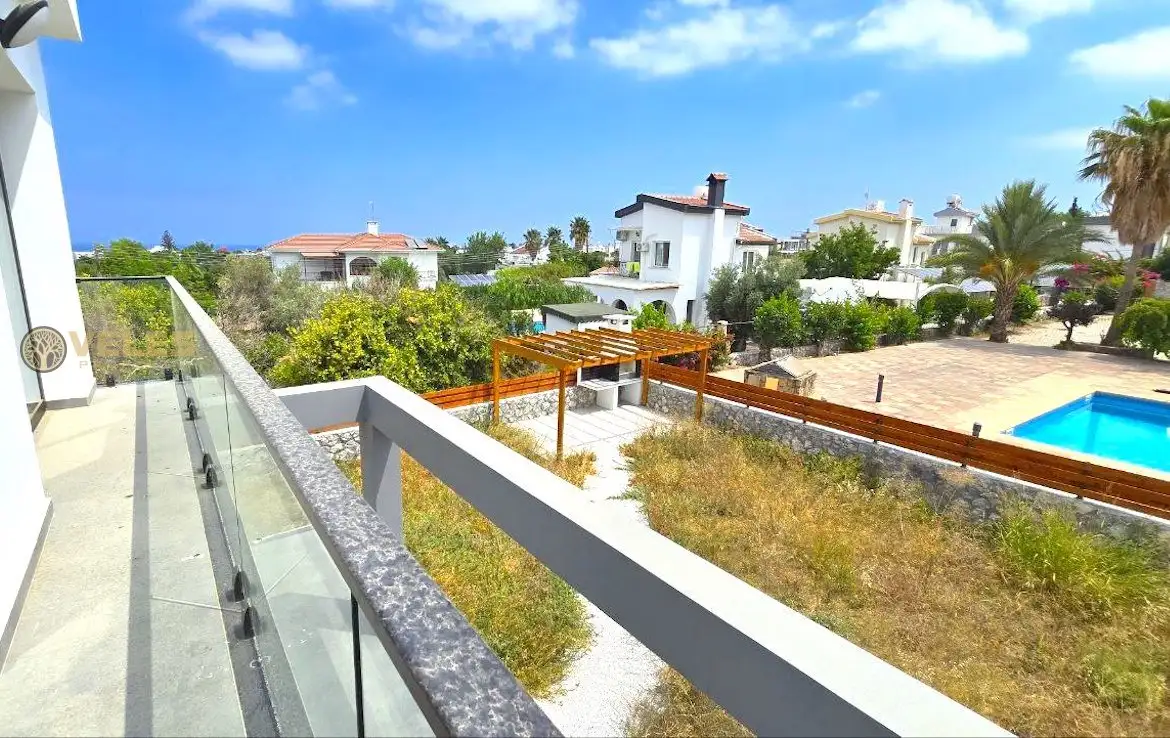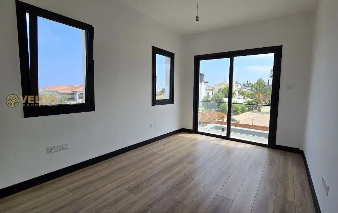 We present to you a new villa near Kyrenia. It is located in the well-known popular village of Alsancak. The villa is situated in a quiet cul-de-sac. Close to markets and a British school. There is a large hotel with a water park nearby. There is a magnificent beach just two kilometers away from the villa. So, the sea is within easy reach.