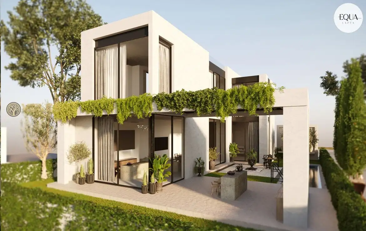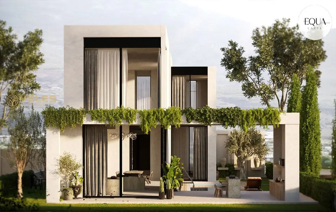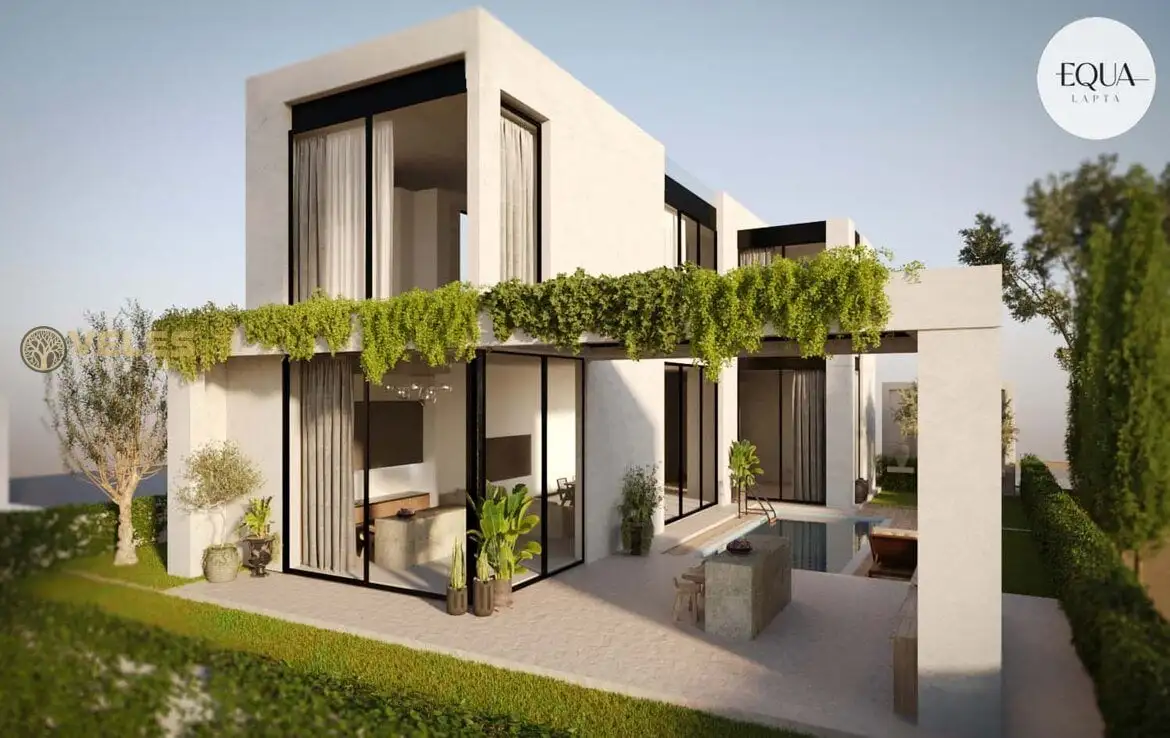 So, this complex is located in a peaceful coastal region of the city of Kyrenia - Lapta. It is an exclusive project with magnificent mountain views. It is built in a modern style. It consists of exclusive villas with 4 bedrooms, semi-detached houses from 3+1 to 4+1, and 2+1 apartments on the first and second floors.