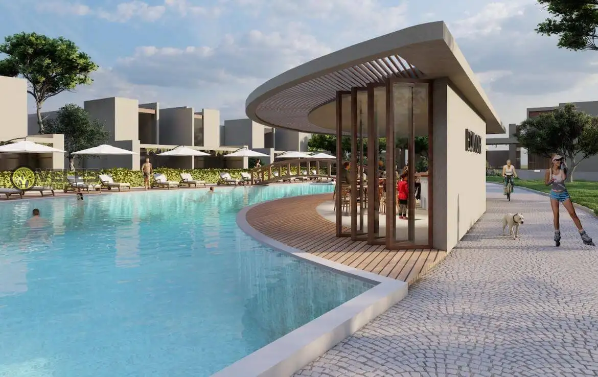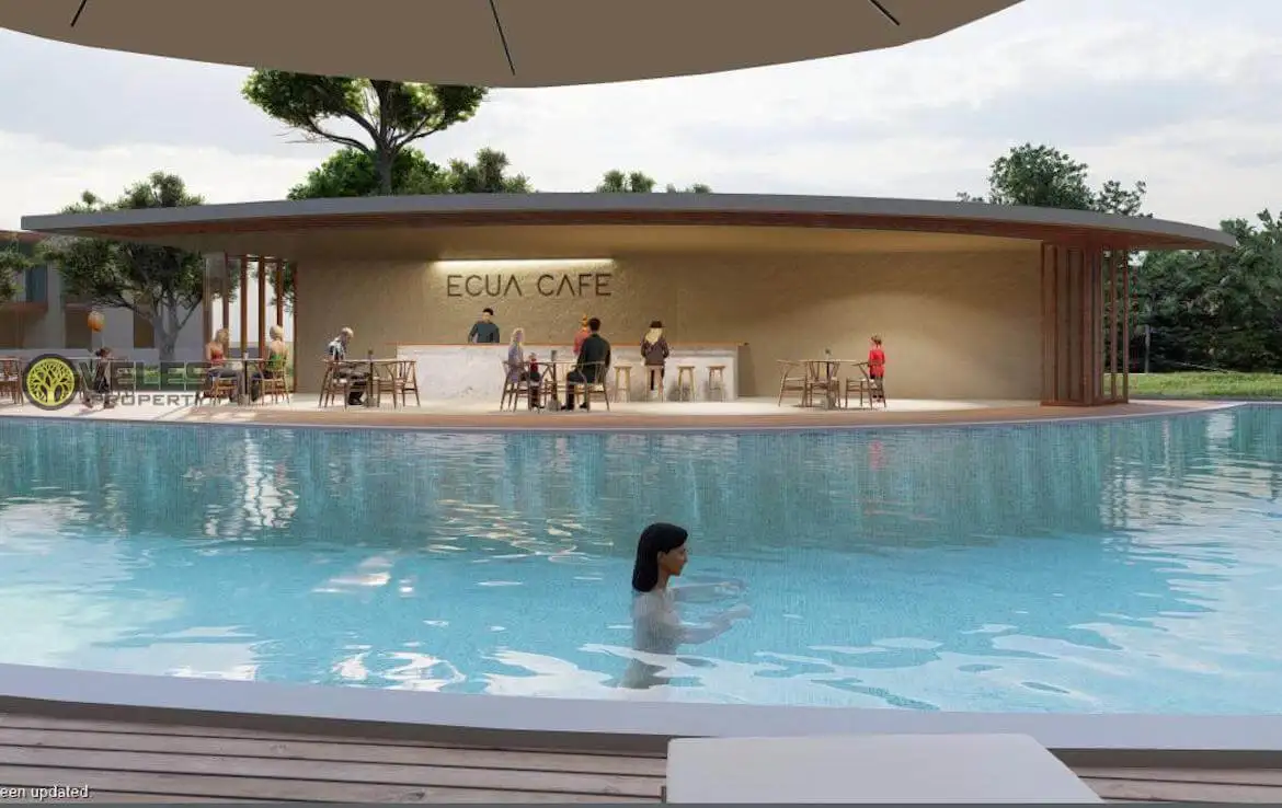 There is a pool and a poolside cafe on the premises. Additionally, the complex has a secured entrance. A pedestrian walkway and green area for children and family recreation.