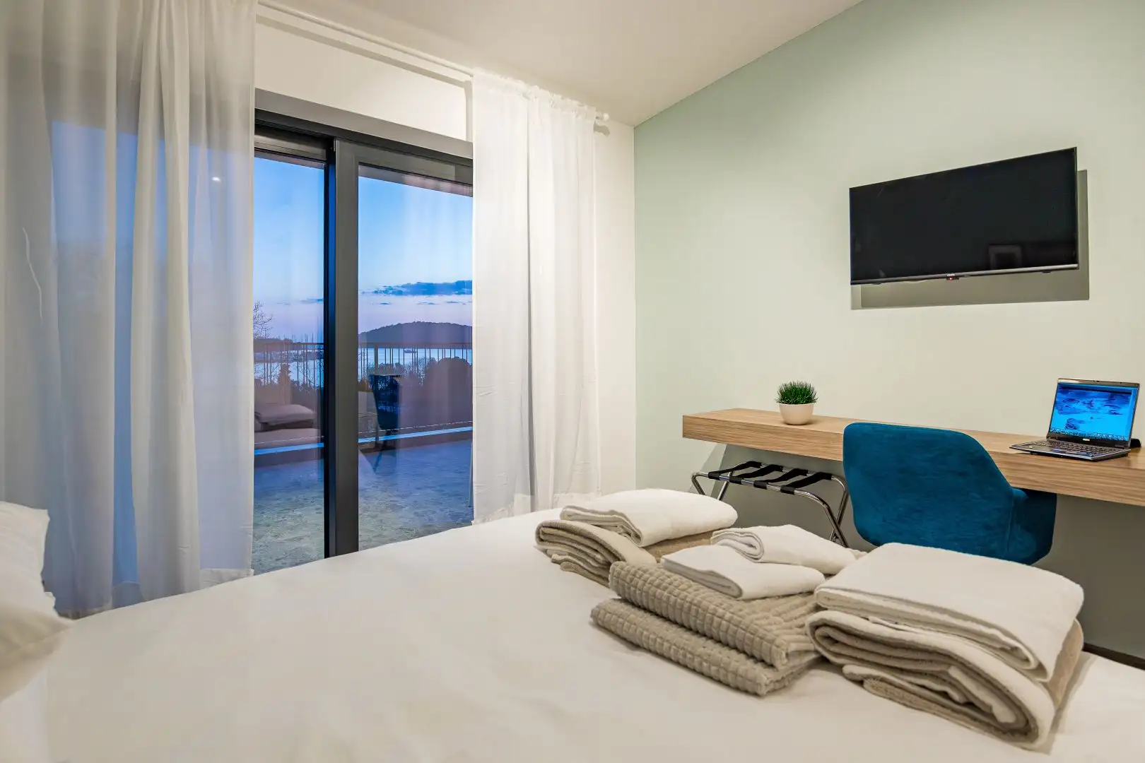 On the top floor there are two more bedrooms, two bathrooms and another terrace overlooking the Adriatic - pure relaxation.