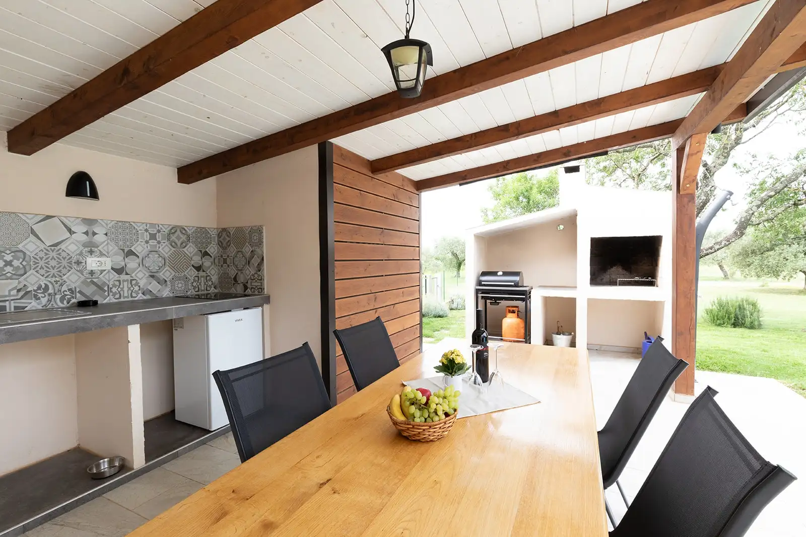 The villa is located in an impressive garden of 6559 m2, which provides complete tranquility and privacy. The street area includes a swimming pool measuring 3 x 8 m, an indoor summer kitchen measuring 4 x 6 m with a pool boiler room and an additional toilet, as well as spacious areas for rest and relaxation in the fresh air. A particularly valuable element of the property is the autochthonous Istrian olive garden with more than 50 olive trees of the Leccino variety, which emphasizes both the beauty and authenticity of the estate.