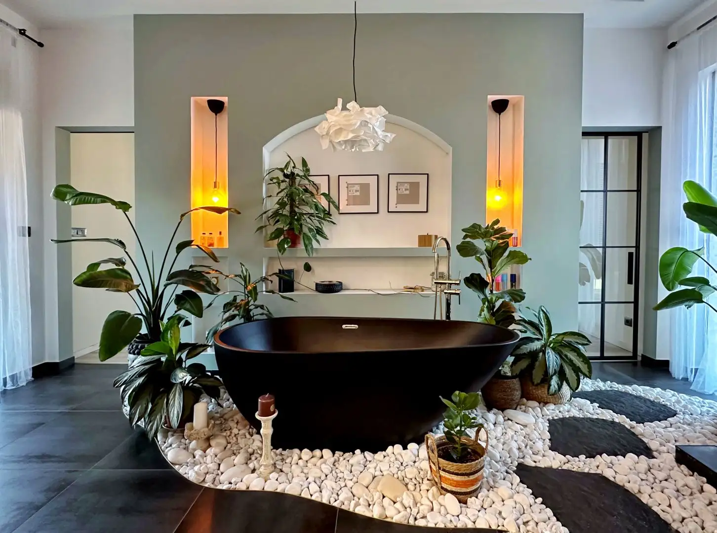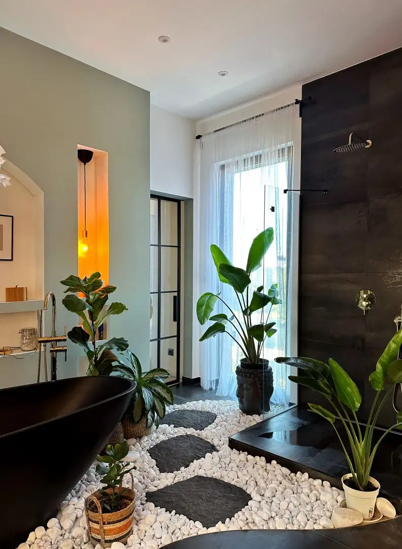 * High-quality PVC window and dark door fittings are installed to match the interior and exterior of the villa.