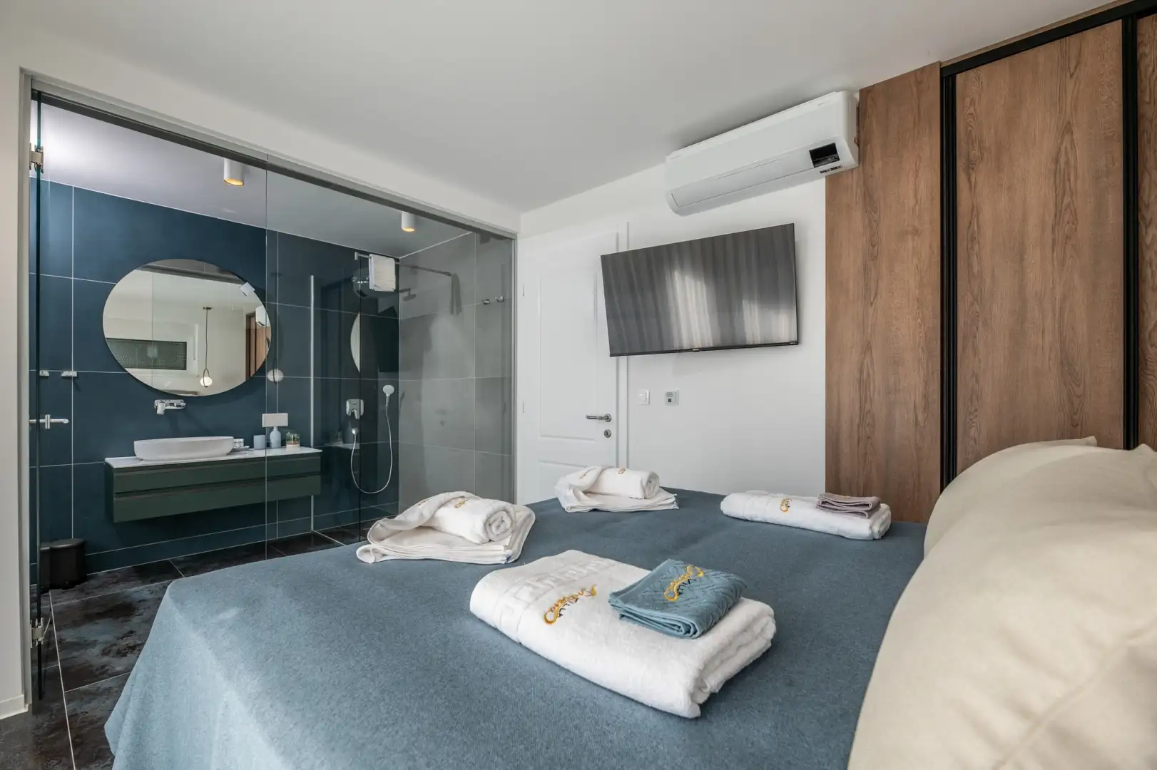 Inside, the villa is decorated at a high level, with an emphasis on luxury and minimalistic elegance. Natural light fills the space, and high-quality materials are used everywhere, including warm floors, designer plumbing, air conditioners, smart TVs, reliable safes and high-speed Internet.