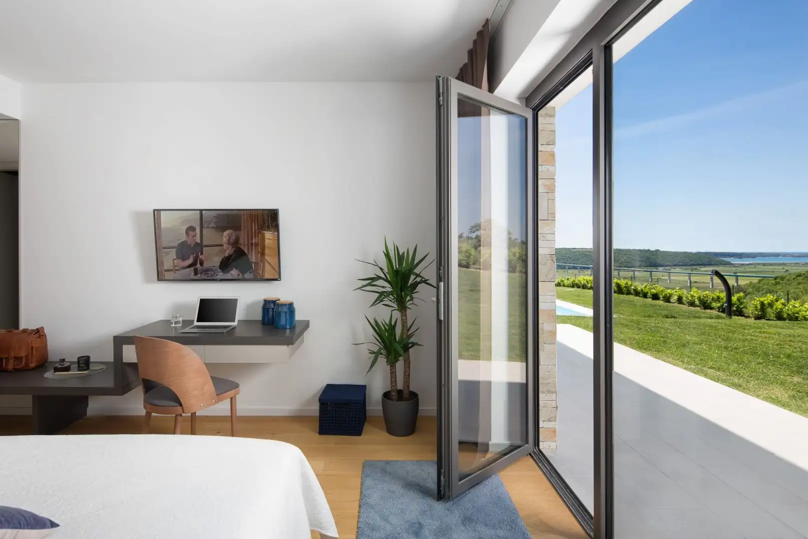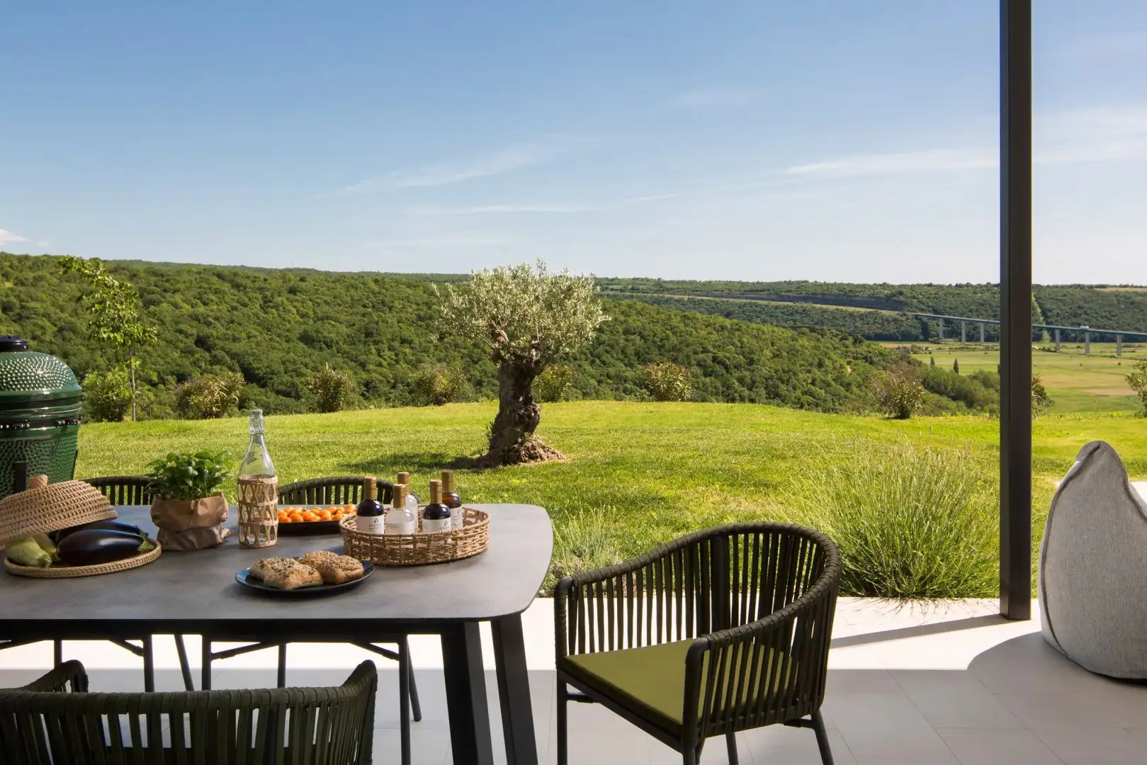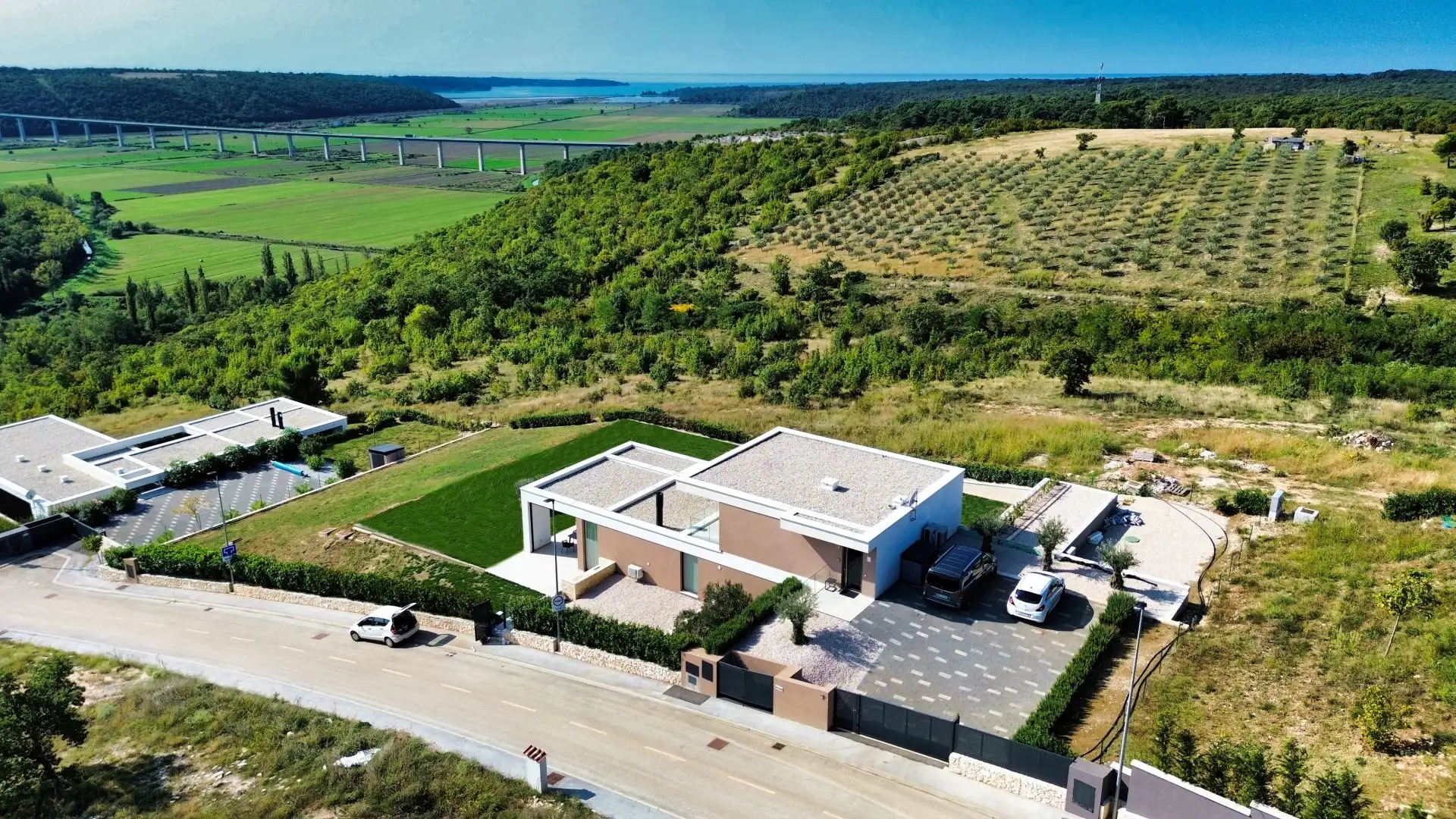 Just a few minutes drive from the city of Novigrad, the sea and its beautiful beaches, this modern villa is located in an exceptionally quiet area and offers breathtaking panoramic views of the sea and the valley of the Mirna River.