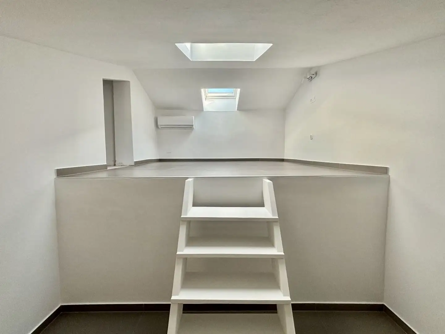 The third apartment is a compact room of 40 square meters, offering a living room with a kitchen, bathroom, a gallery-style bedroom and a small entrance terrace.