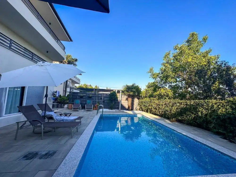 Allow us to introduce a splendid newly constructed residence in the very heart of Matulji over Opatija, offering three distinct residential units, a garden, and a swimming pool.