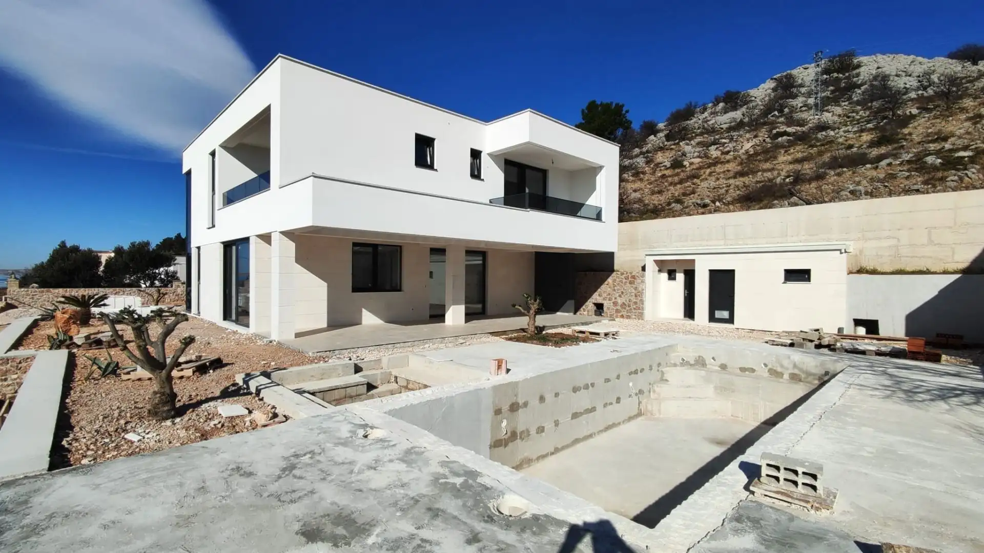 Modern villa with a pool, second line from the sea and panoramic sea view, just 60 meters from the sea! This contemporary luxury villa, with an area of 180 sq. m. on a plot of 864 sq. m. featuring a pool and breathtaking sea views, offers maximum comfort and an exquisite lifestyle. Located in a quiet area, just 60 meters from the shore in the second row, it is perfect for those seeking privacy while being close to the sea. The spacious first floor combines elegance and functionality, with a modern kitchen connected to the dining area and a large living room, creating the ideal space for relaxation and socializing. There is also a guest toilet, a bathroom with a laundry room, and a technical room with a separate entrance. On the first floor of this exclusive villa, there are three luxurious bedrooms, each with its own bathroom and access to a large terrace. The view from here is truly stunning — the blue of the sea and the endless horizon create a sense of perfect harmony. Built from the highest quality materials, the villa boasts impeccable energy efficiency with an A+ rating. Underfloor heating ensures a comfortable temperature year-round, while air conditioning in every room maximizes comfort. The roof is designed for future installation of solar panels, providing opportunities for sustainable and economical living. Located in the beautiful Stari Grad, a place that combines pristine nature, rich history, and crystal-clear sea, this villa offers the perfect blend of luxury and Mediterranean lifestyle. When purchasing property in Croatia, the buyer incurs additional costs of about 7% of the purchase price: property transfer tax (3% of the property value), agency commission (3% + VAT), attorney's fee (approx. 1%), notary fees, court fees, and payment for certified translator services. Signing the Agency Agreement (for a 3% commission + VAT) precedes the showing of properties.
