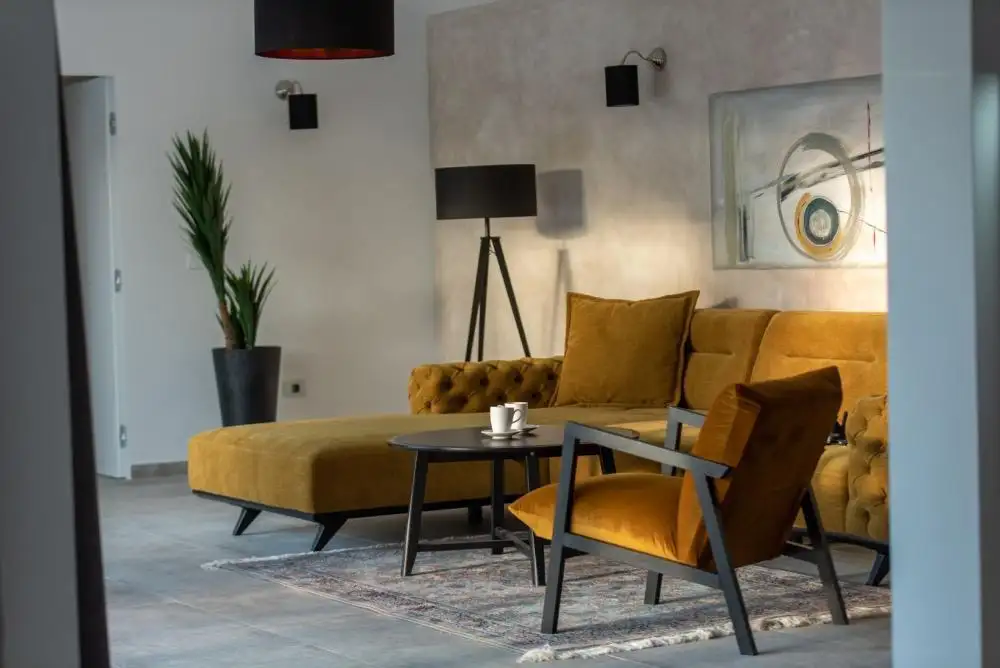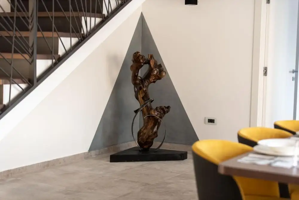A beautifully and tastefully adorned garden, complete with a built-in irrigation system and olive trees, guides you to the ground floor of this exquisite property.