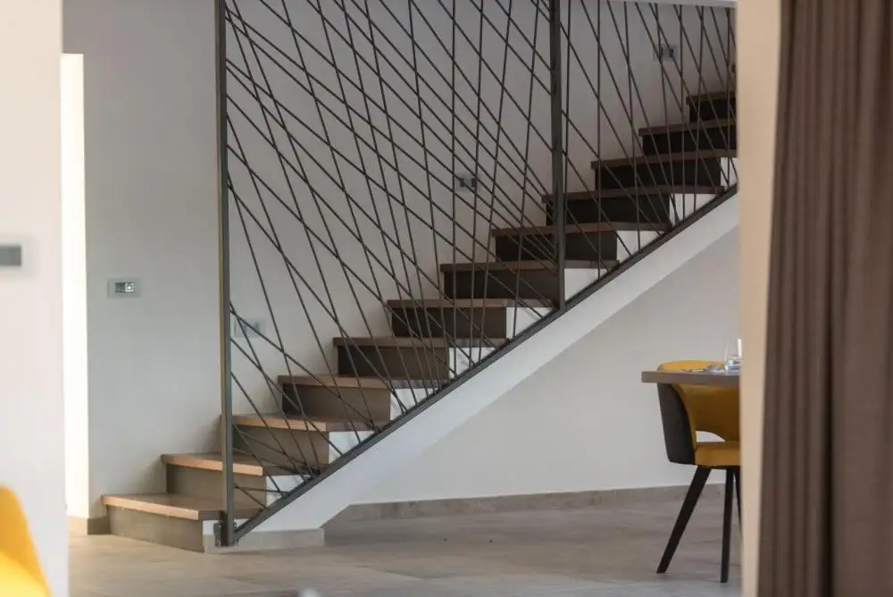 Here, on the ground floor you will find a kitchen with a dining area, seamlessly connected to a living room that extends into a wellness room. The wellness room features a sauna for complete relaxation, and a gym for those who wish to maintain their fitness routine.