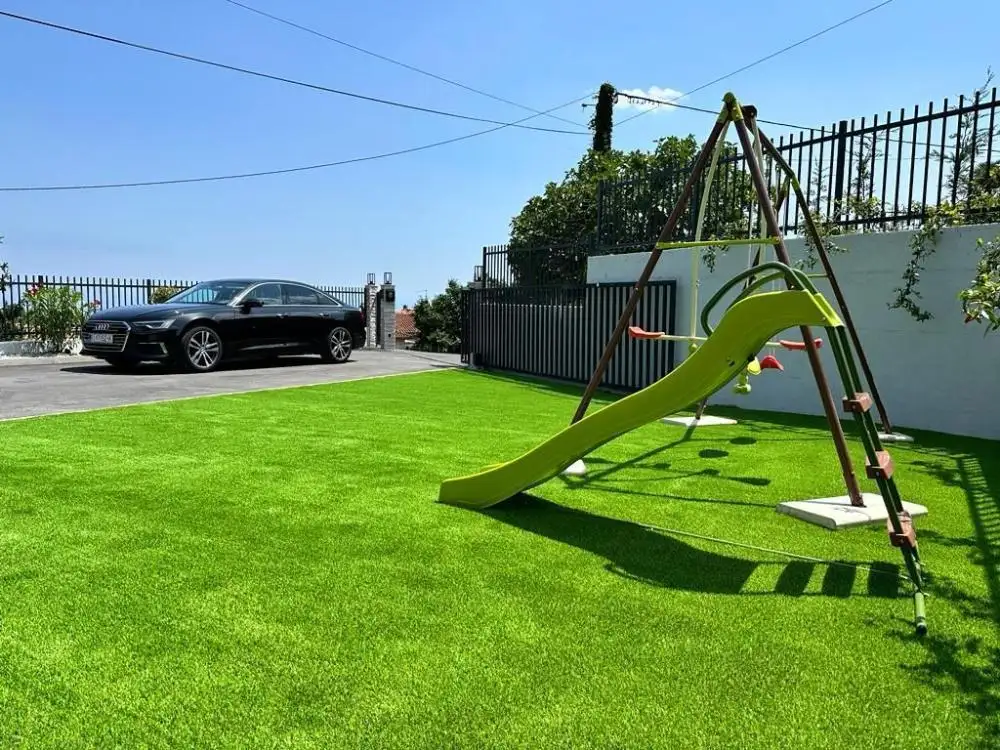 The outdoor area is a true paradise: a heated pool (8x4) with an automatic chemical dispenser, a children's playground with entertainment features, and a barbecue area for enjoying culinary delights in the fresh air. The area exudes the aroma of Mediterranean flora and is covered with lush lawns maintained by an intelligent irrigation system.