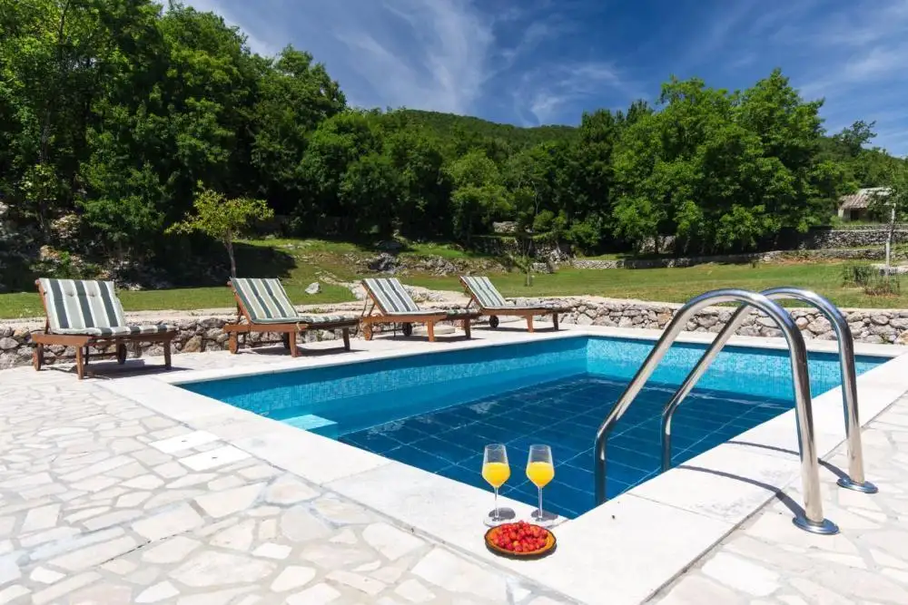 Air conditioning is installed in each bedroom, and the house also has solar panels, which ensures a pleasant stay in these facilities throughout the year. The houses are decorated in a traditional style - the predominant natural materials are wood and stone with functional furniture that offers a pleasant stay and rest in the houses. The spacious garden is fenced and beautifully decorated and maintained, ensuring perfect privacy and peace. It offers beautiful green areas and a relaxing atmosphere in a forest idyll. There is also a swimming pool of 23 m2 and an arranged sunbathing area. The property is ideal for lovers of nature and peace, outside the usual tourist crowds, yet close to beautiful beaches and clear sea. The location is full of various forest trails for hiking and exploring the nearby hamlets and the Učka Nature Park.