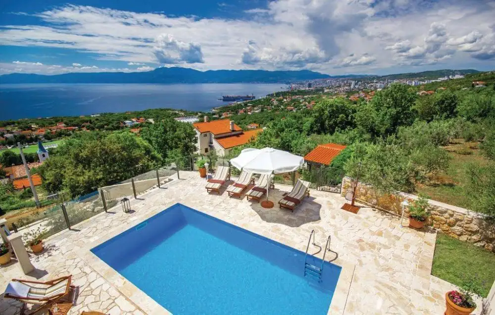 The holiday house is located on top of a place with a panoramic view of the Kvarner Bay.