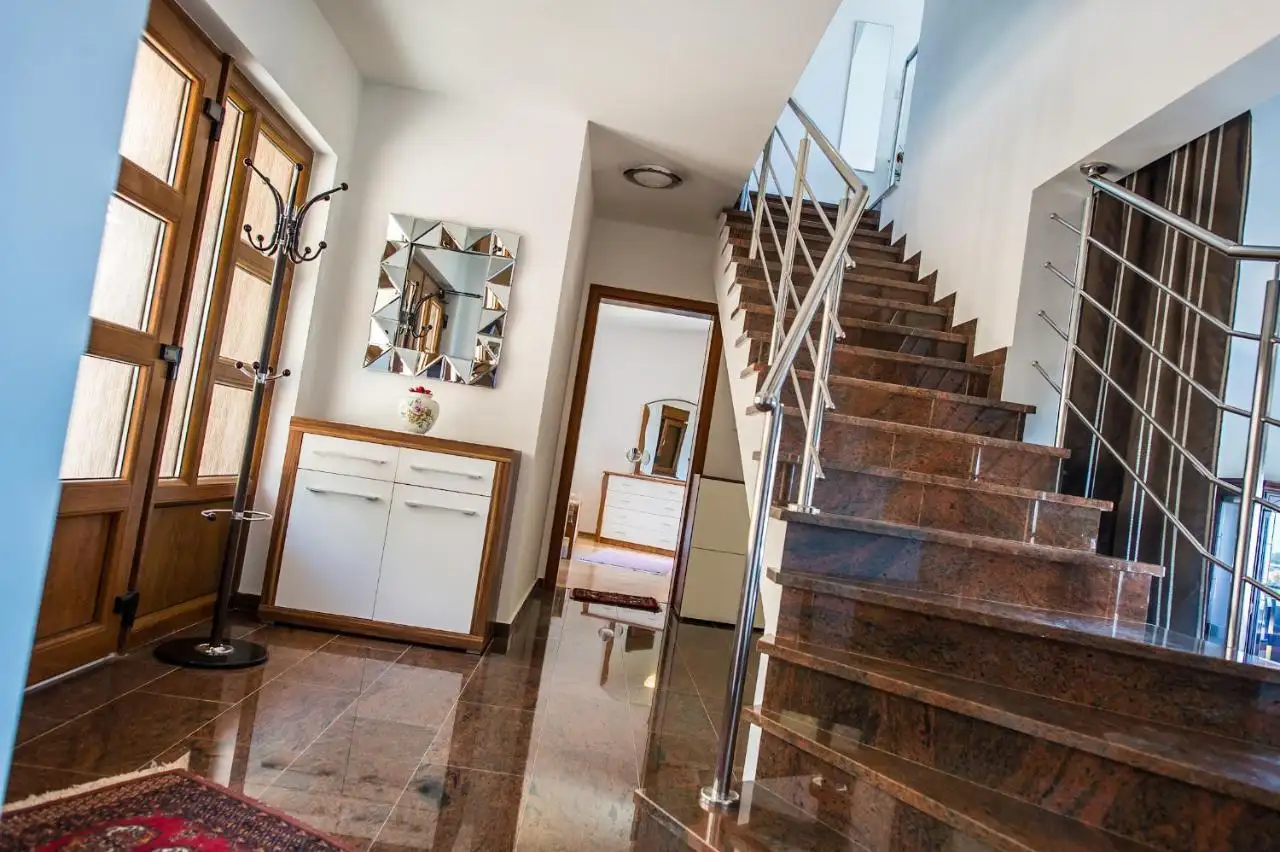 The territory spans 510 m², with the villa itself boasting a generous 440 m² of living space. Inside, you'll find five elegant bedrooms, each featuring an en-suite bathroom and a private balcony.