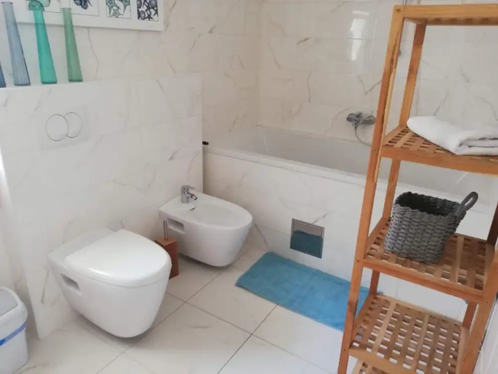 Medium level: spacious living room with kitchen and dining room plus one bedroom and bathroom for the guests and terrace.
