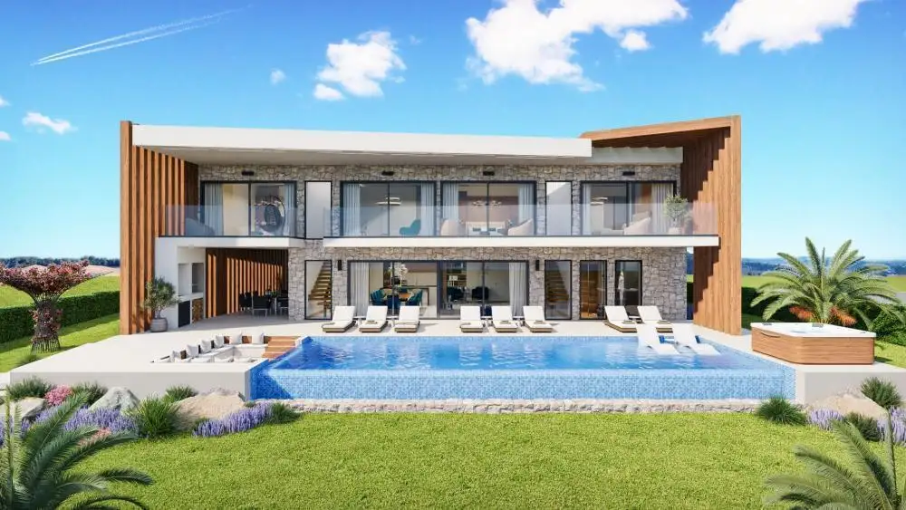We offer a very high-quality and carefully planned villa in a beautiful location 16 km from the sea, but on elevated position. It is part of a new project by already awarded investors for the award of the most luxurious holiday villa. Future owners are guaranteed quality, beautiful interiors and exteriors, comfort, convenience and, above all, luxury. This luxurious villa located in the idyllic western part of Istria provides an ideal escape from the busy everyday life, offering at the same time the harmony of luxury and a relaxing environment for rest and enjoyment. The proximity of wineries, renowned restaurants and olive oil producers ensures that the future owners, in addition to the beauty of the villa itself and nature, will also enjoy superb gastronomic and oenological experiences. With a unique modern design, authentic stone parts and wooden elements, this villa represents a perfect combination of style and functionality that fits perfectly into the natural environment. Modern lines and shapes blend elegantly with natural elements, creating a harmonious blend of tradition and innovation. Large glass walls allow abundant natural light to illuminate every corner of the space. This approach not only creates a feeling of spaciousness, but also harmonizes the interior with the surrounding environment.
