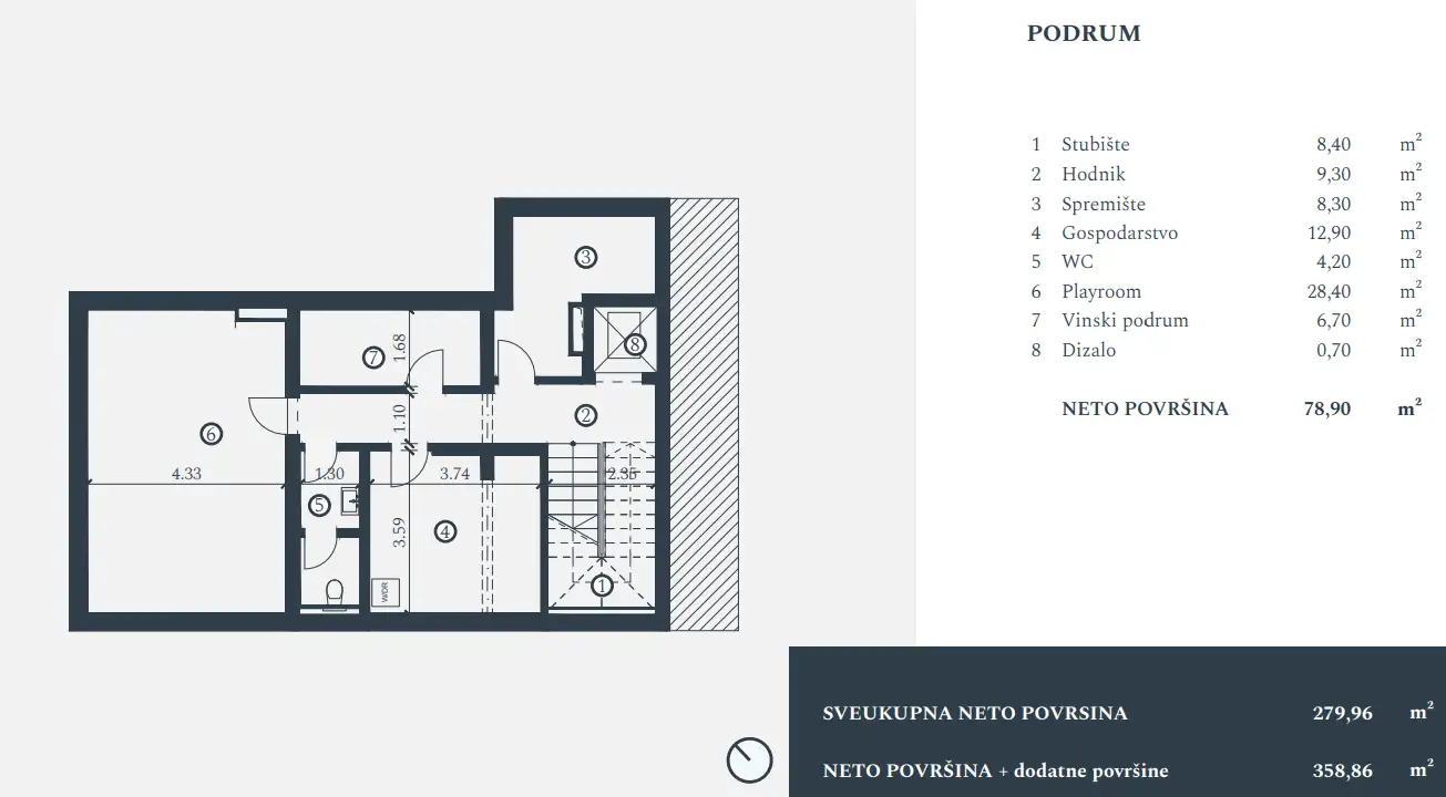 Basement: toilet, game room, pantry and wine cellar.