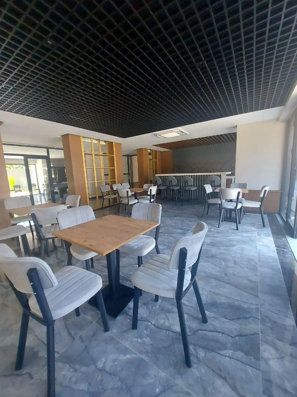 The first floor of the villa consists of a corridor, a living room with a fireplace on bioethanol and access to a spacious covered terrace, a toilet and a pantry. On the ground floor there is also a modern kitchen with the latest equipment and a dining room with access to a covered terrace with an outdoor barbecue, which is connected to the garden where the pool is located. On the first floor of the villa there is a corridor, bathroom and two bedrooms, and from one bedroom there is access to a spacious balcony with a beautiful view. Heating and cooling is carried out through a central heating and cooling system with fan coils.
