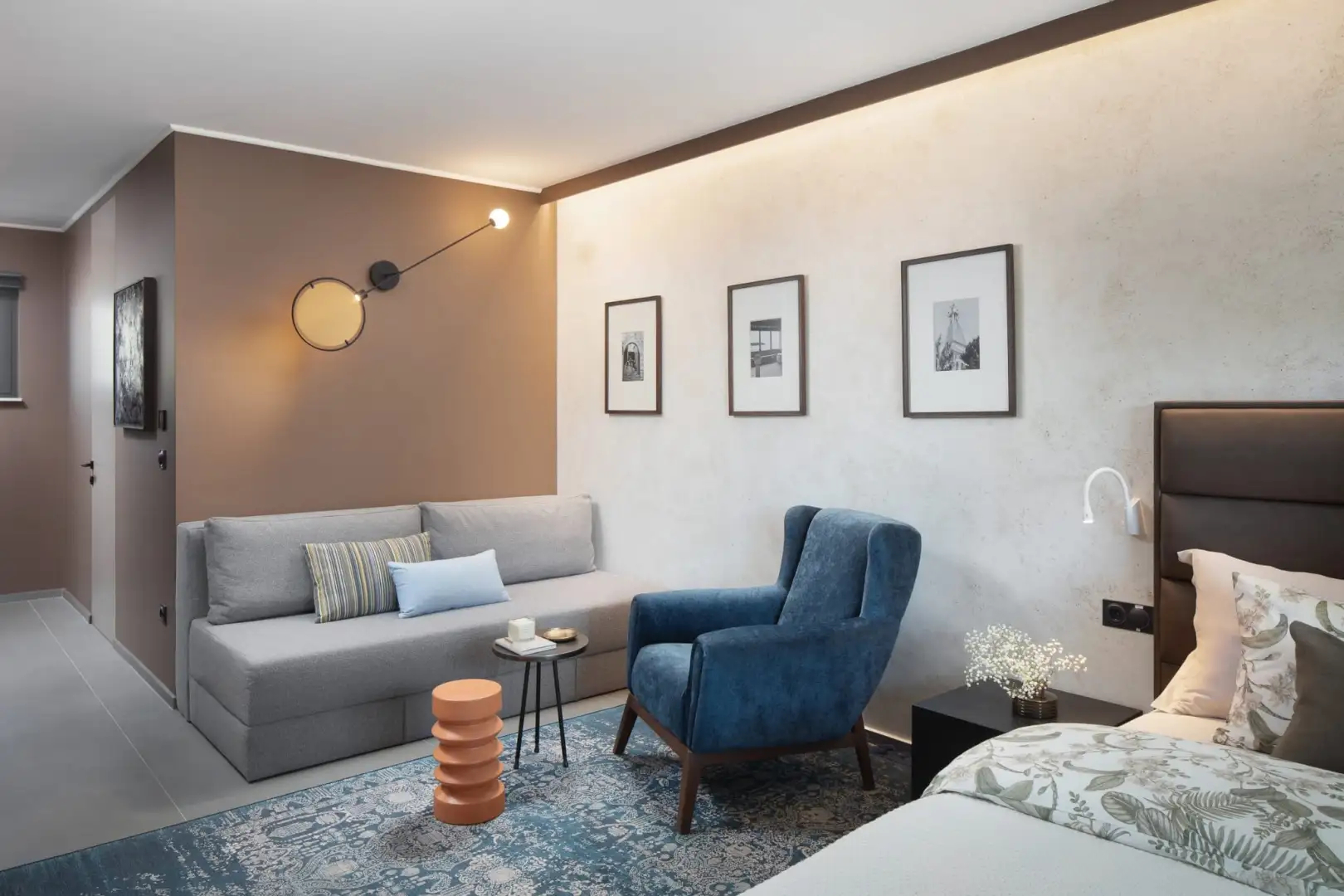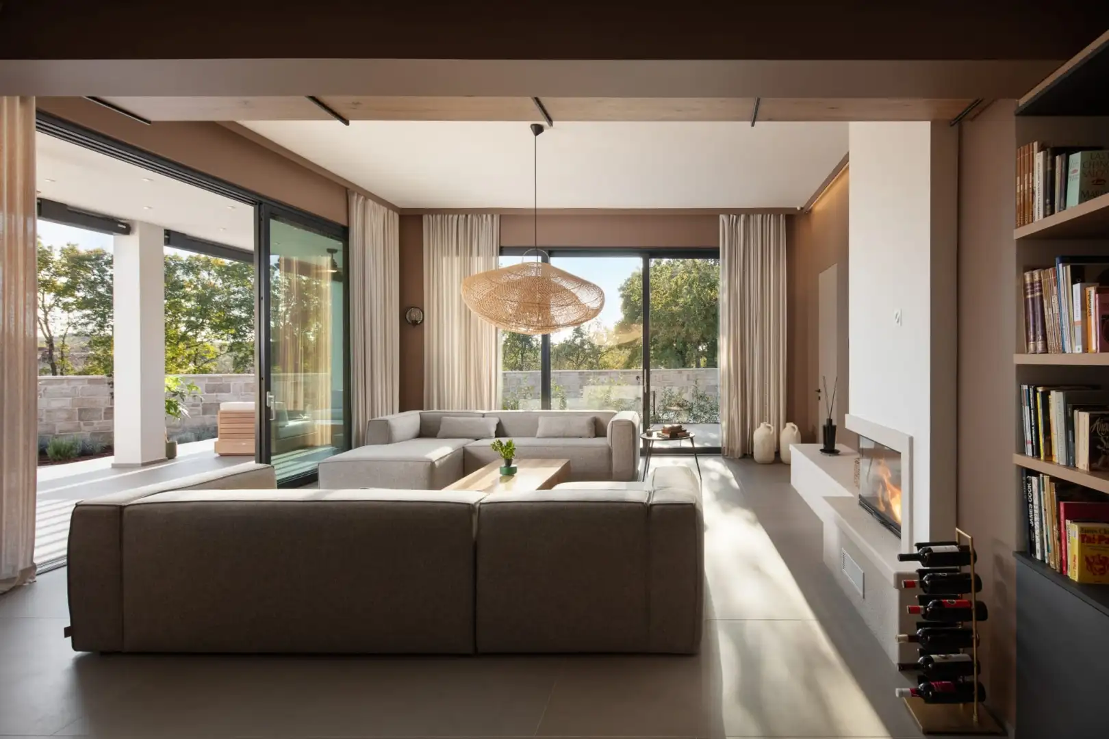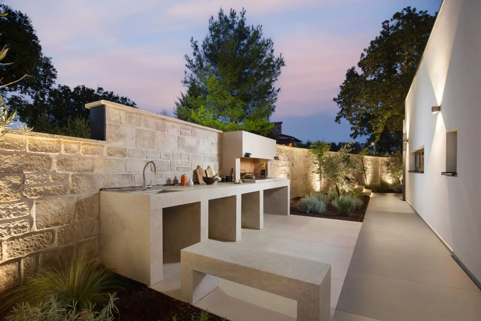 The villa is located on a plot of 954 square meters and offers 200 square meters of elegant one-storey living space. It is just a four-minute drive from the picturesque Lima Canal and is connected to Rovin by a 12-kilometer bike path built on the site of a former railway line - an ideal way to explore the surroundings in a calm and environmentally friendly environment. Inside the villa is designed with an open concept in mind. The spacious living room, dining room and fully equipped kitchen smoothly transition into each other in a bright, sun-drenched space with large sliding glass walls that open onto the luxurious terrace. This seamless transition between inner and outer space creates a natural connection to the environment.
