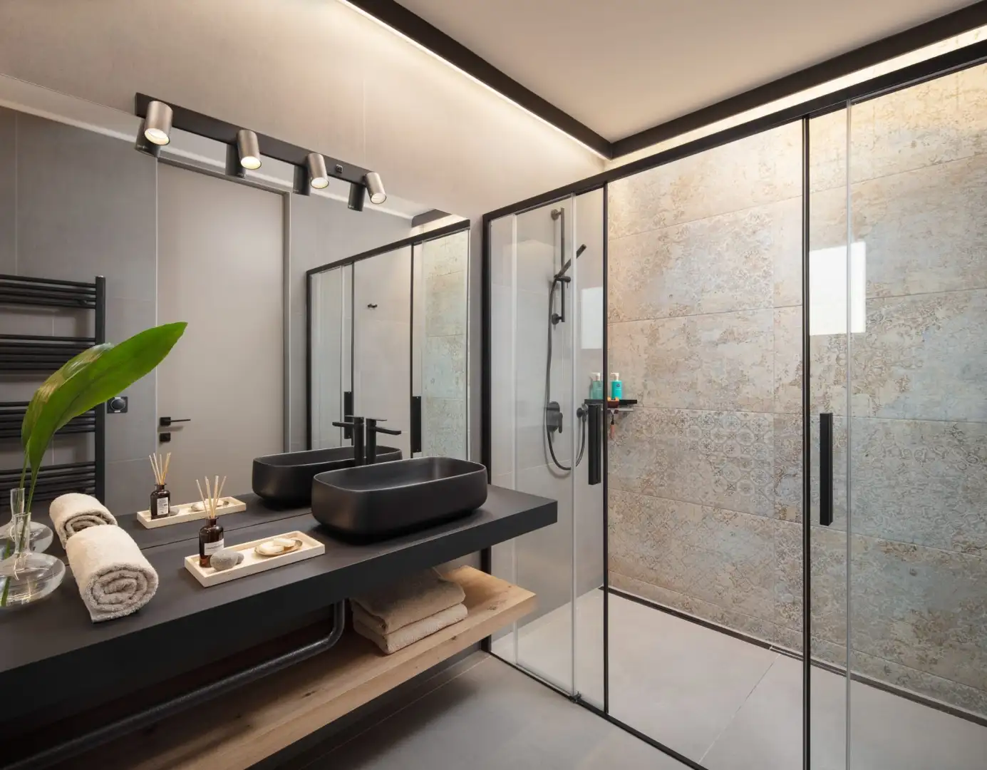 The villa has three high-quality bedrooms, each with a separate bathroom, as well as an additional toilet for guests. The whole house is equipped with a floor heating system, and the heat pump and solar panels provide excellent energy efficiency. Smart home management system allows you to centrally control lighting, climate and much more.