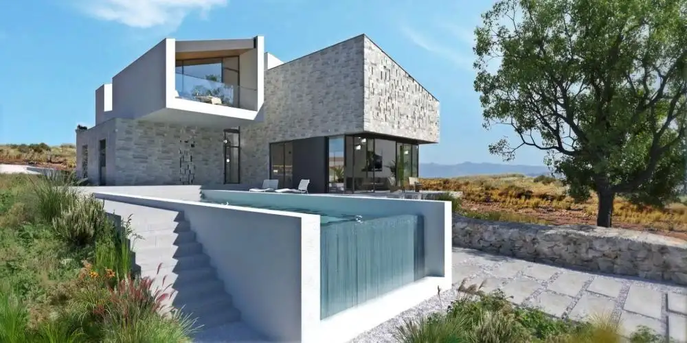Modern architectural villa with swimming pool, 10 km from the sea! Living area: 182 sq.m. • Land: 1,170 sq.m. On the southeastern...