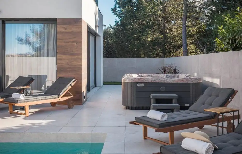 Equipped with both cooling and multiple heating options, the villa guarantees comfort regardless of the season. For those leading an active lifestyle, the villa provides ample opportunities for staying fit. In addition to the heated pool and outdoor jacuzzi, residents can maintain their fitness in the small onsite gym. Surrounding the villa, the environment is perfect for leisurely strolls, invigorating runs, or scenic cycling routes, catering to those who prioritize health and wellness.