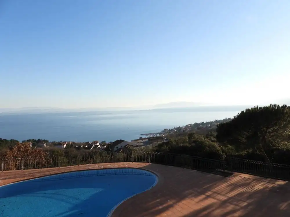 In front of the garage, there is enough space for two more cars, while the entire garden offers a beautiful panoramic view of Kvarner.
