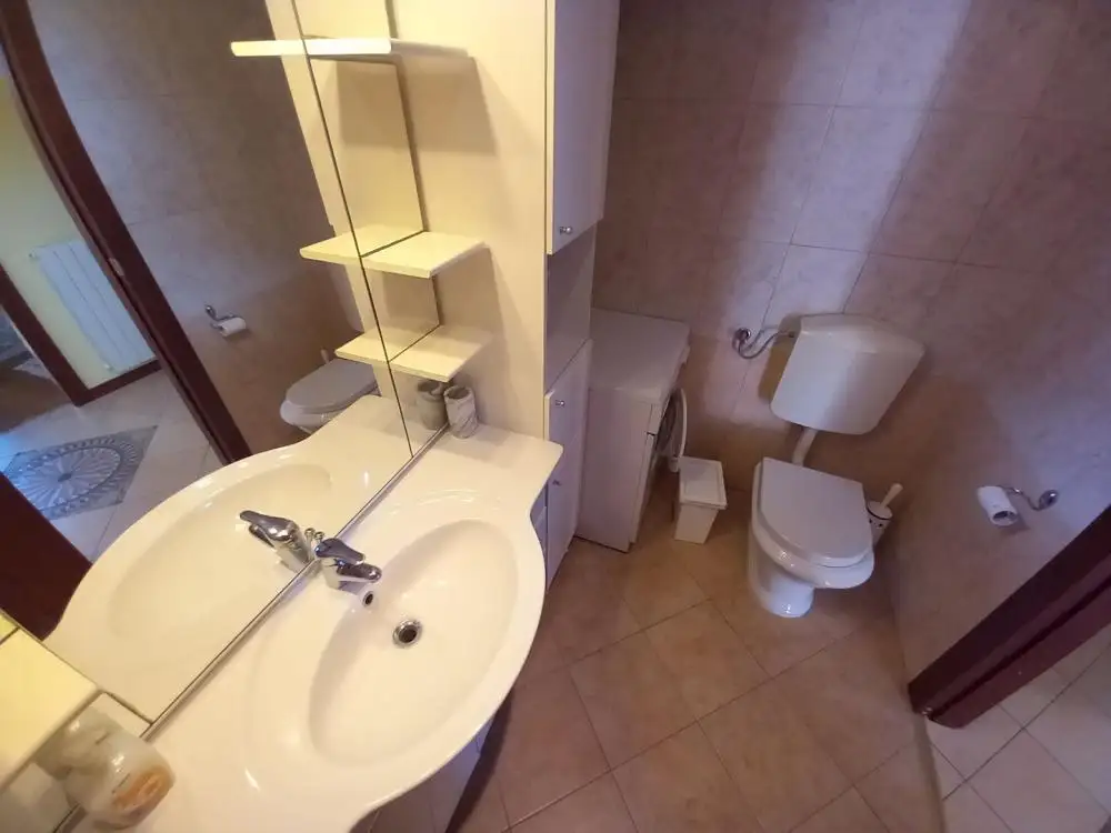 On the mezzanine floor, a two-story, large four-room apartment is situated with a kitchen, living room, dining room, two bathrooms, a toilet, a laundry room, and a beautiful terrace. This terrace is connected by external stairs to the surrounding land and pool. On the ground floor, there is a comfortable two-room apartment consisting of two bedrooms, a living room with a kitchen, a bathroom, and two balconies. On the first floor, there is another two-room apartment with the same layout and a beautiful view towards Kvarner.