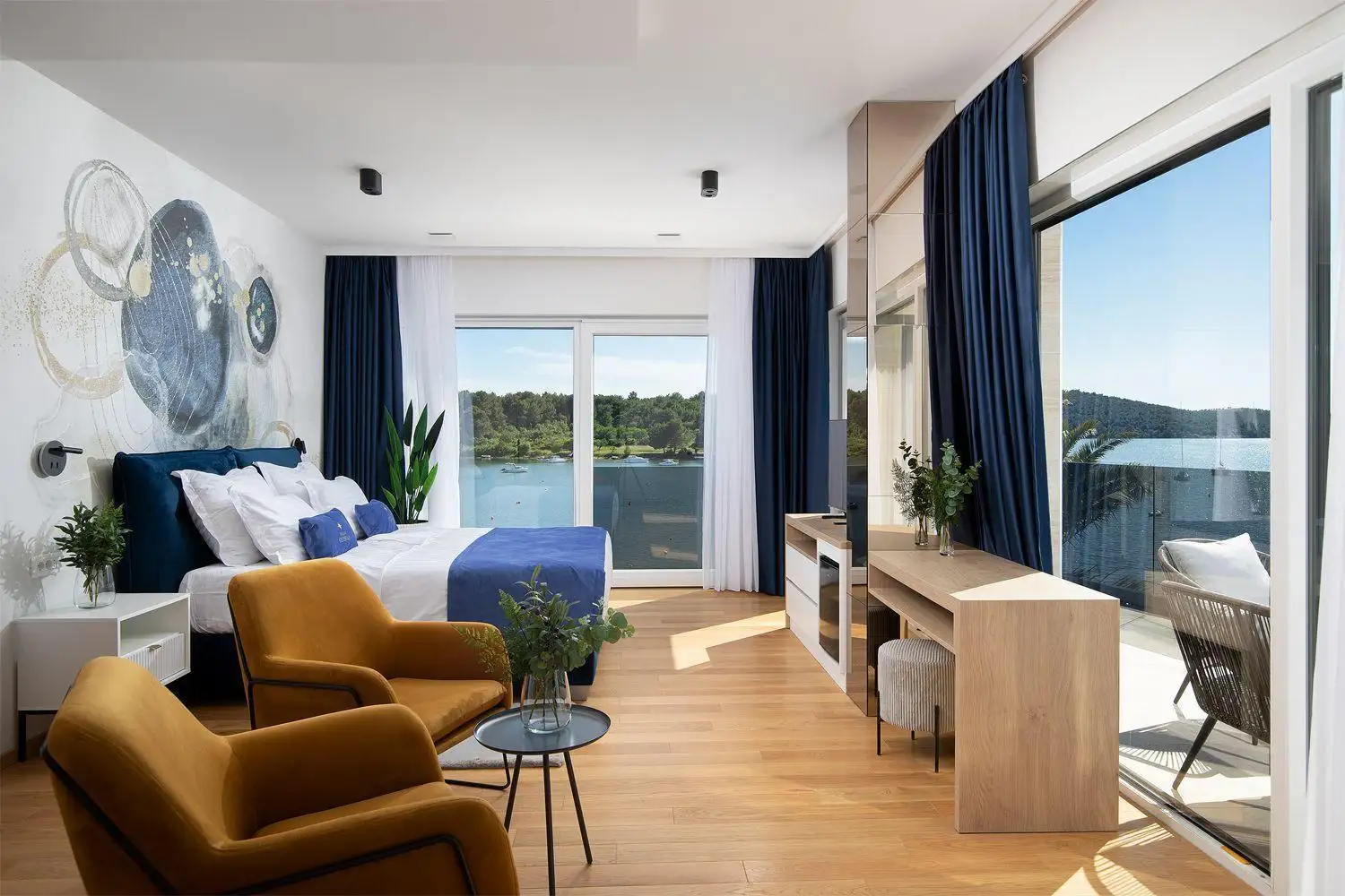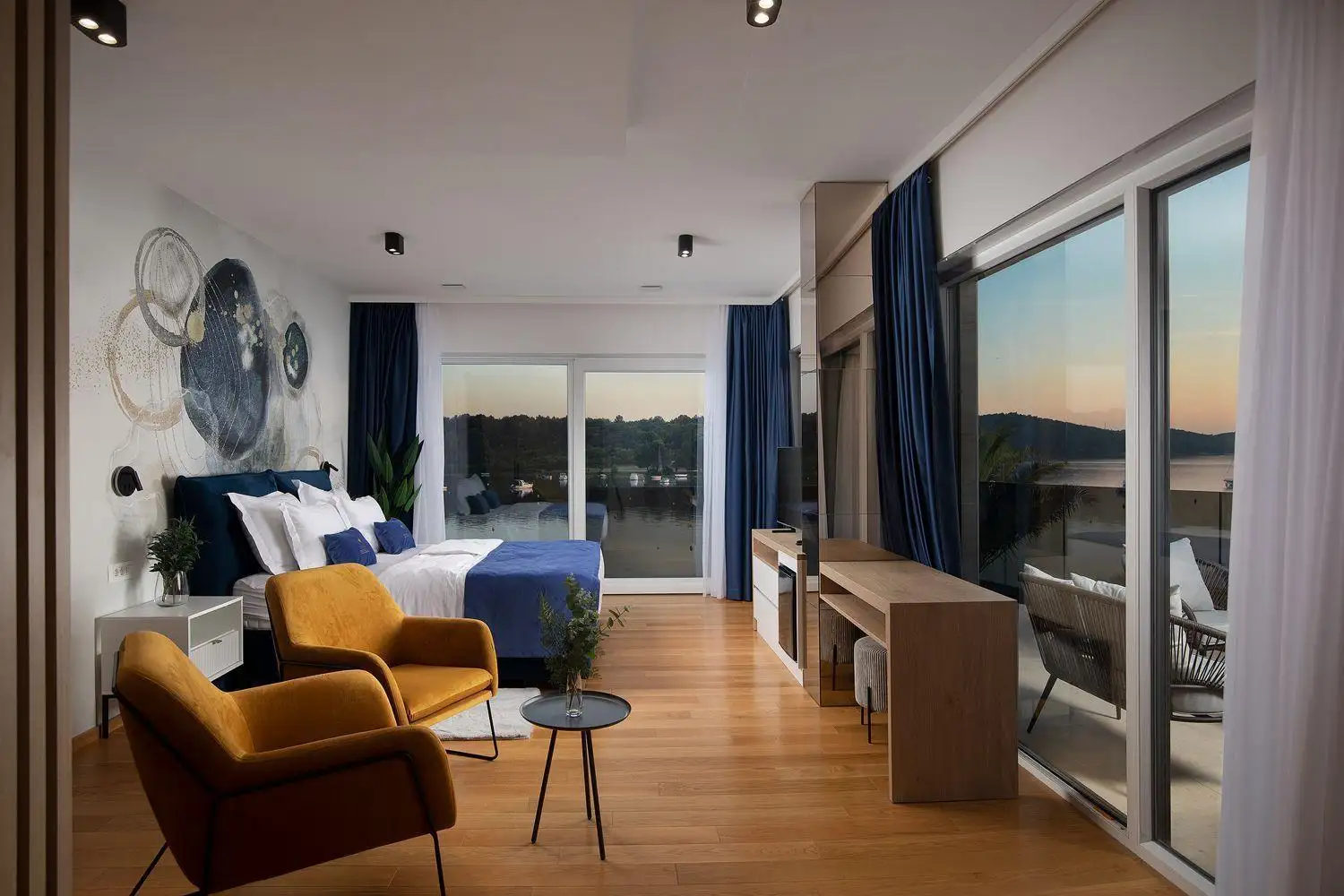A staircase leads to the first floor, where you'll find three bedrooms, most of which offer breathtaking sea views. Each bedroom has its own en-suite bathroom, ensuring maximum comfort with elegant design and top-notch amenities.