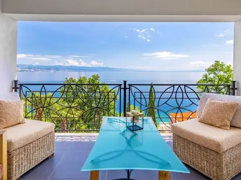 Located in a quiet and quiet area, but close to all necessary amenities, this villa offers the perfect combination of privacy, comfort and convenience. Located just 150 meters from the sea, it provides breathtaking panoramic views of Kvarner Bay thanks to its southern location and panoramic glass windows in all the southern rooms.