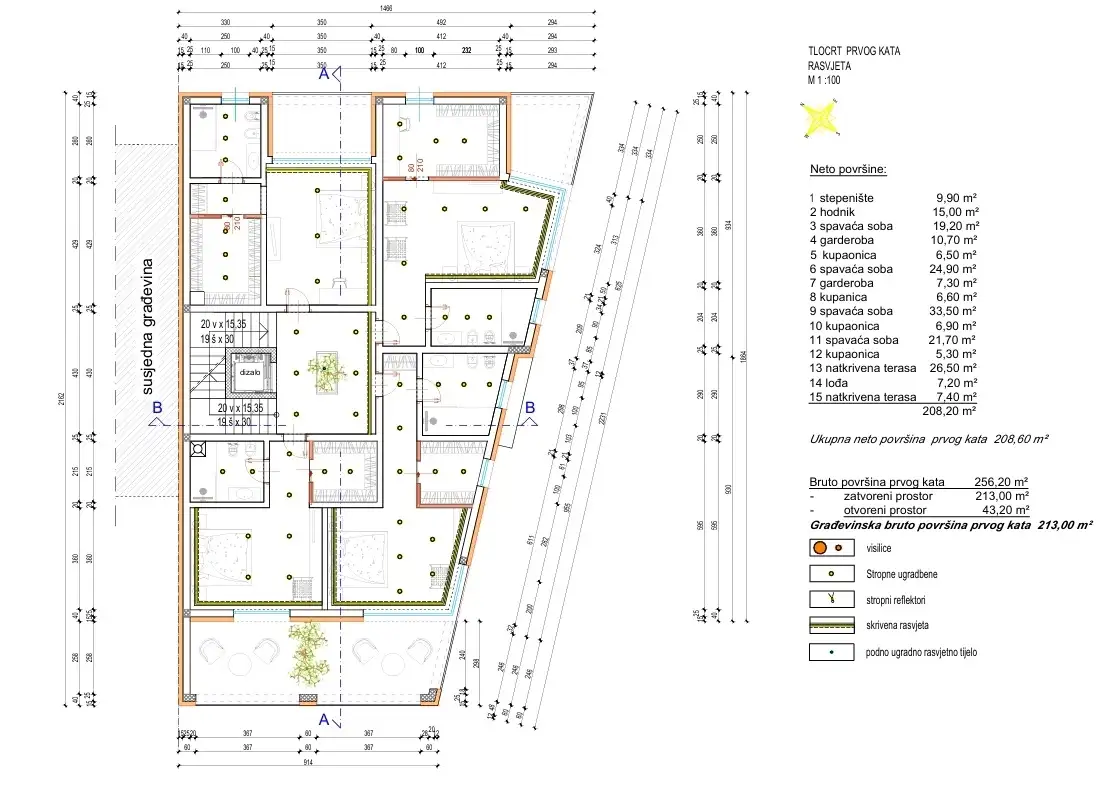 Modern installations already completed in the first stage include a warm floor in each room, multi-zone air conditioning and ventilation, air dehumidifiers throughout the house, a central vacuum system, individual thermostats in each room, top-class aluminum windows and doors and full pool preparation. All necessary utilities including water, electricity, sewerage, drainage and telecommunications were connected and tested.