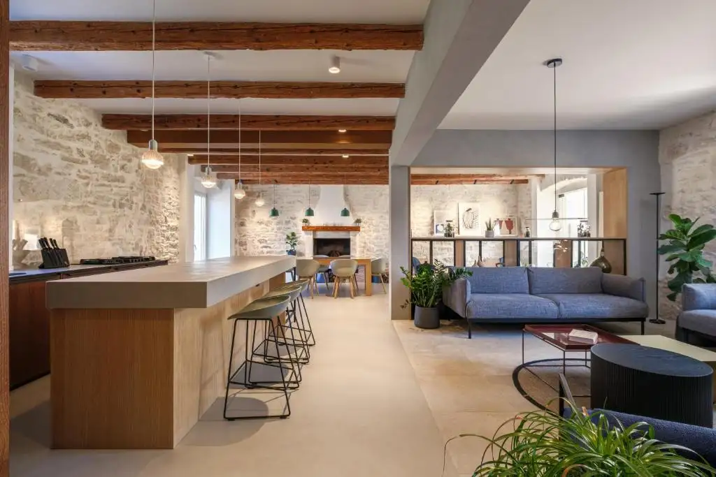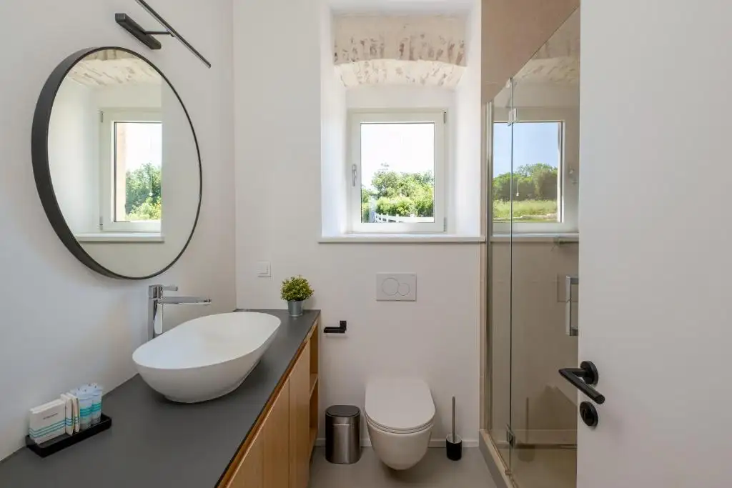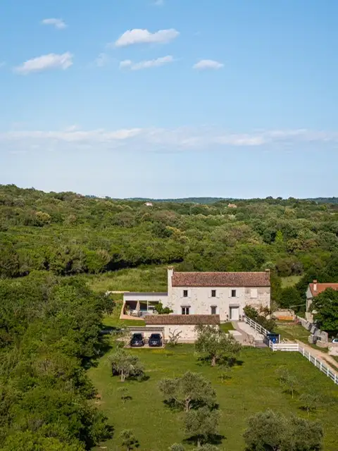This magnificent stone villa in Rovine, located on an impressive plot of 4000 m2, is offered for 3.4 million euros. Just 5 minutes by car from the beach and just 2.5 km from the coast, it represents one of the best examples of luxury real estate in Croatia and an exceptional opportunity for those looking for a villa in Rovina for sale, surrounded by nature and privacy. Built in 1908 and fully renovated in 2024, the villa combines authentic Eastrian charm and modern elegance. The exterior is made in traditional stone and wood, while the interior features a modern design, premium comfort and high-quality details suitable for a sophisticated life in one of the most desirable regions of the Croatian coast. Stone villa of traditional style with an area of 400 sq.m. consists of a spacious living room with a kitchen and dining area, a master bedroom with a bathroom, two additional bedrooms and three bathrooms.
