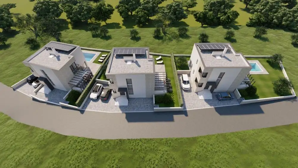The yard is equipped with a green irrigation system and a summer kitchen next to the pool, which ensures the full enjoyment of the quiet green surroundings. The house is being sold turnkey and construction is scheduled to start in mid 2024.